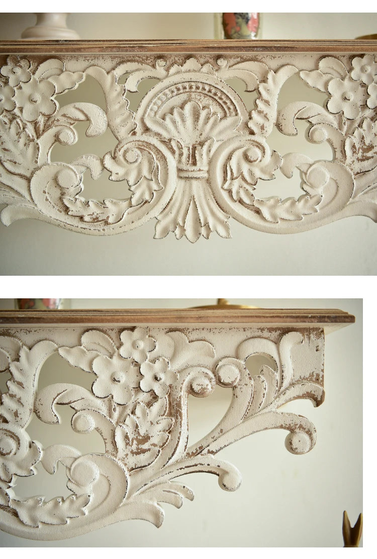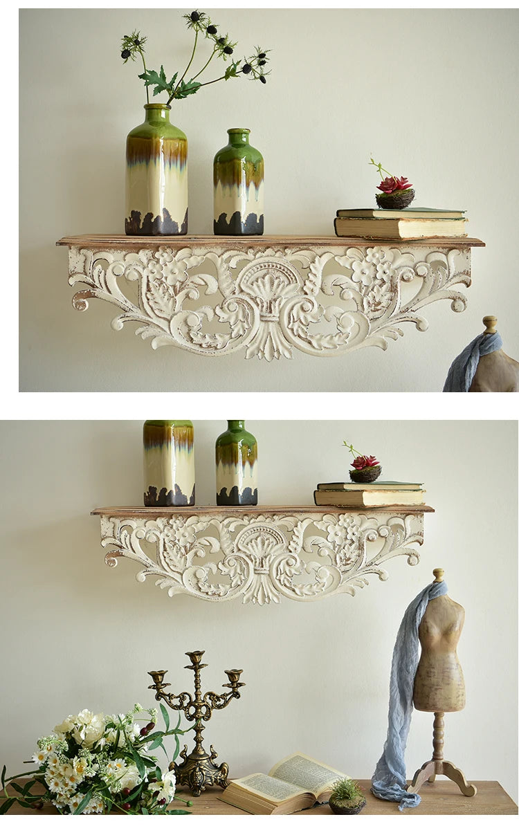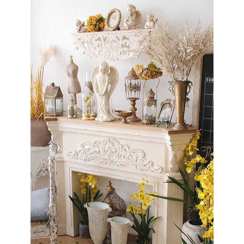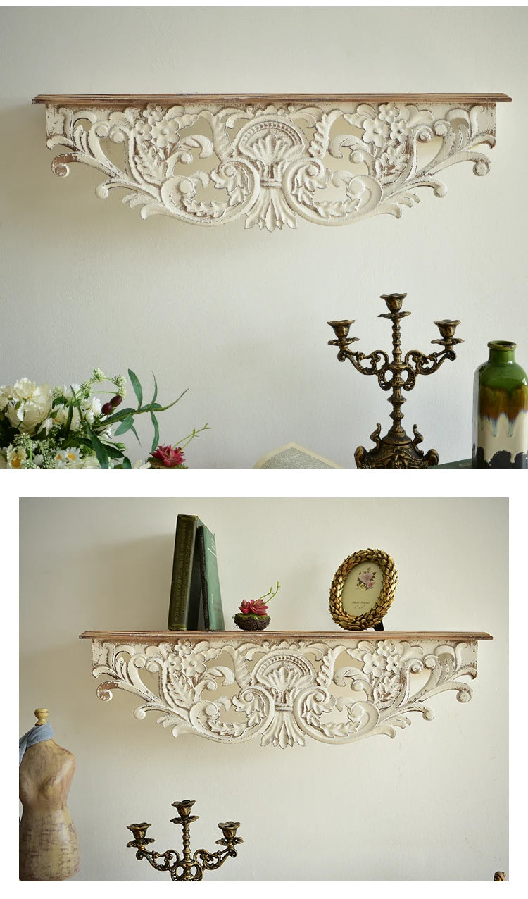 Beschreibung: Dieses wunderschön gestaltete Korbel-Mantelregal kombiniert Massivholz und langlebiges MDF, um sowohl authentischen rustikalen Charme als auch langanhaltende Stärke zu bieten. Die verwitterte weisse Oberfläche hebt das filigrane Design im französischen Landhausstil hervor und macht jedes Stück einzigartig gealtert und voller Charakter. Hergestellt aus einer Mischung aus hochwertigem Holz und mitteldichtem Faserboard (MDF) für verbesserte Haltbarkeit und Stabilität. Die glatte MDF-Rückwand bietet eine stabile Basis, während die Holzkorbel authentische Schnitzereien mit einem vintage verwitterten Look zeigen. Ideal zum Ausstellen von Fotos, Pflanzen, Trophäen, Büchern und mehr, bringt dieses Regal eine warme, europäisch inspirierte Eleganz in jeden Raum. Die verwitterte Oberfläche variiert mit jedem Stück und sorgt für eine einzigartige, shabby-chic Aussage in Ihrer Wohnkultur. Geniessen Sie die perfekte Mischung aus traditioneller Handwerkskunst und moderner Materialinnovation für ein charmantes und dennoch praktisches Akzentstück.