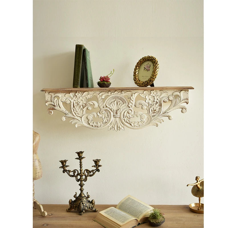 Verleihen Sie Ihrem Zuhause mit unserem französischen Landhaus-Wandregal rustikale Eleganz. Sein einzigartiges Design und seine funktionale Vielseitigkeit sind ein Muss für Stil-Enthusiasten.