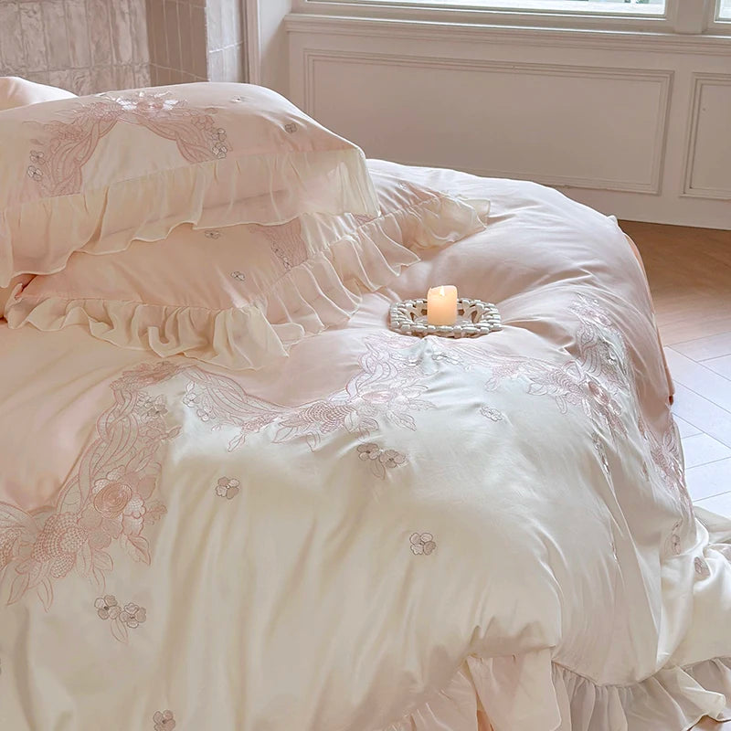 Bereichern Sie Ihr Schlafzimmer mit einem Hauch von Eleganz und Komfort mit unserem französischen Spitzenbettwäsche-Set. Diese luxuriöse Bettwaren-Kollektion verspricht ultimative Weichheit und ein königliches Gefühl, das Ihr Heim in eine ruhige Oase verwandelt.