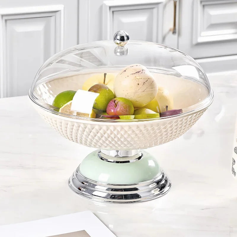 Verleihen Sie Ihrem Zuhause Luxus mit unserer Früchteschale im europäischen Stil. Der staubdichte Deckel und das langlebige Material sorgen für Stil und Praktikabilität. Das elegante Design ergänzt jede Einrichtung, ein Muss für Ihr Zuhause. • Hält Snacks frisch • Pflegeleicht und langlebig • Ideal für Gäste • Verschönert das Zuhause