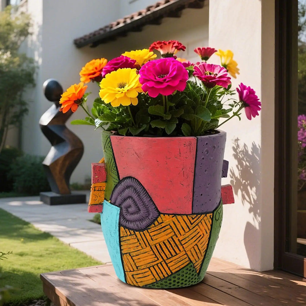 【Innovatives Design】: Erhöhen Sie Ihren Raum mit unserem Abstrakten Gesicht Blumentopf, der entworfen wurde, um jedem Raum mit seinen komplexen Gesichtszügen und Farbmustern einen künstlerischen Flair zu verleihen