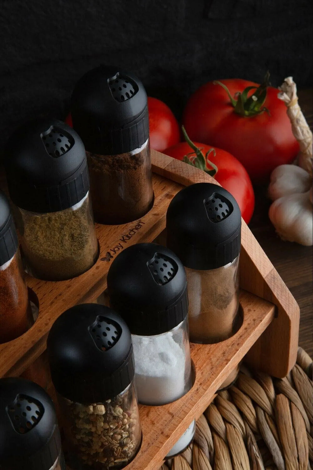 Das Set besteht aus 1 Holzständer und 8-10-12 Glasgewürzbehältern, je nach gewähltem Produkt.