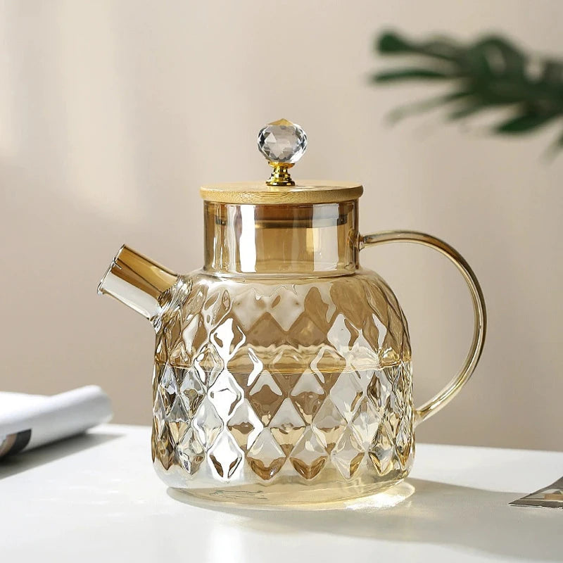 Dieser elegant gestaltete Glasteekessel mit Bambusdeckel und abnehmbarem Filterschnabel vereint Stil und Funktionalität. Geniessen Sie jeden Ausguss und erfreuen Sie sich an der Schönheit des Tees.
