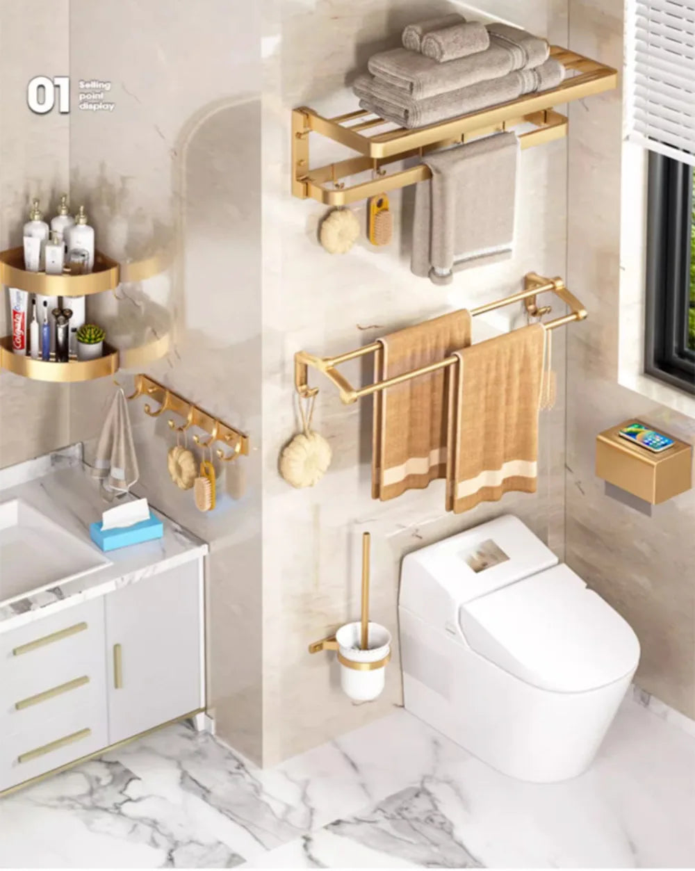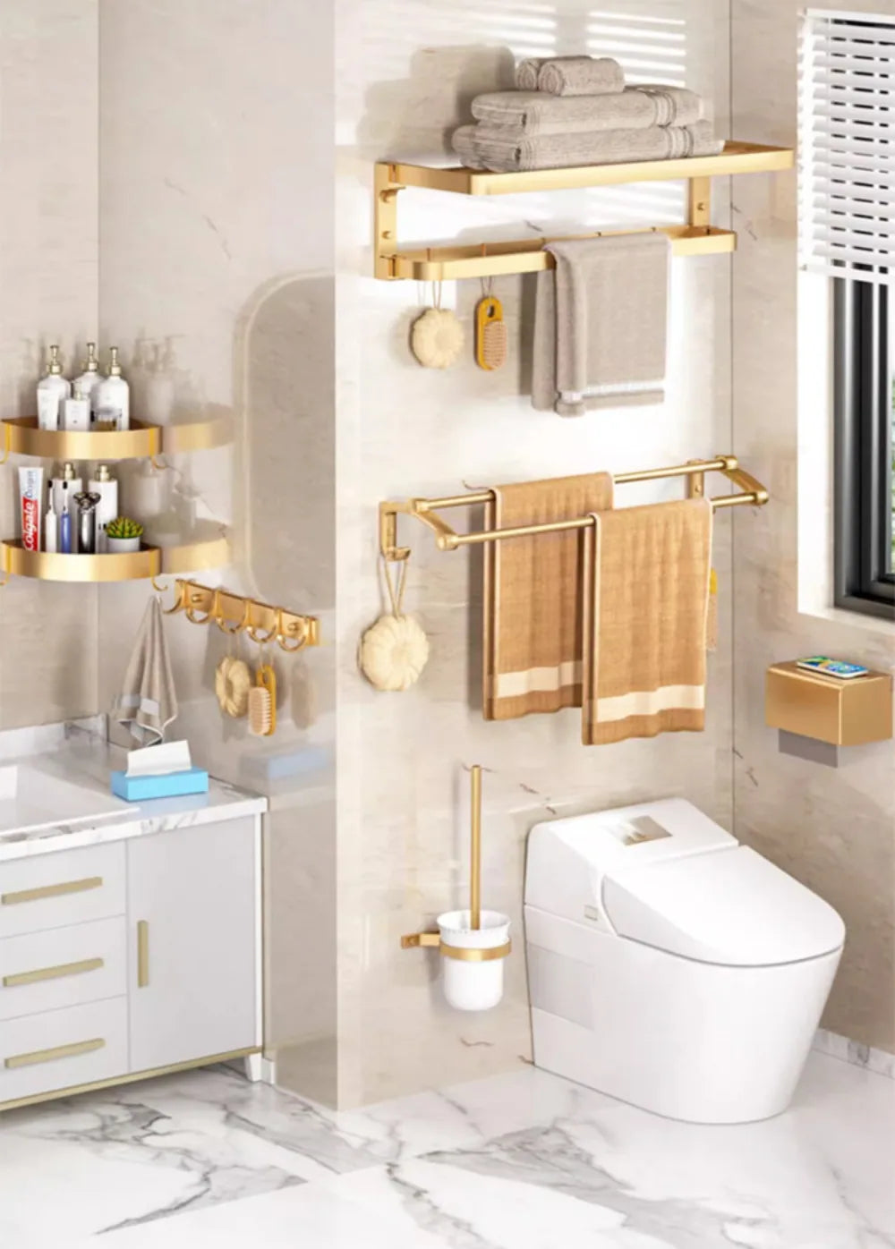 Optional: Diese Produktverbindung muss separat gekauft und separat versendet werden. Die wählbaren Produktkategorien umfassen: Handtuchhalter, Handtuchstange, Ablage, Kleiderhaken, Papierhalter, Toilettenbürstenhalter, Seifenschale usw.
