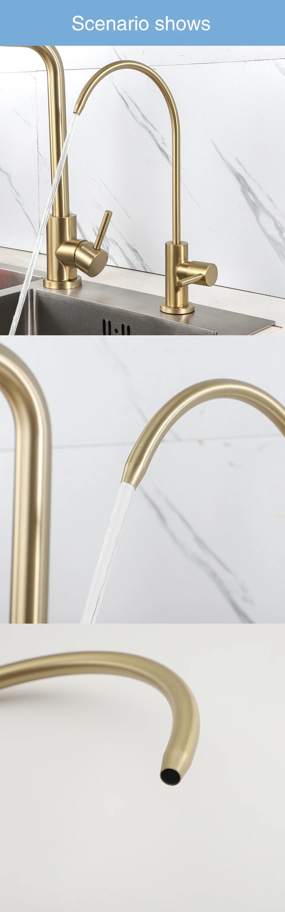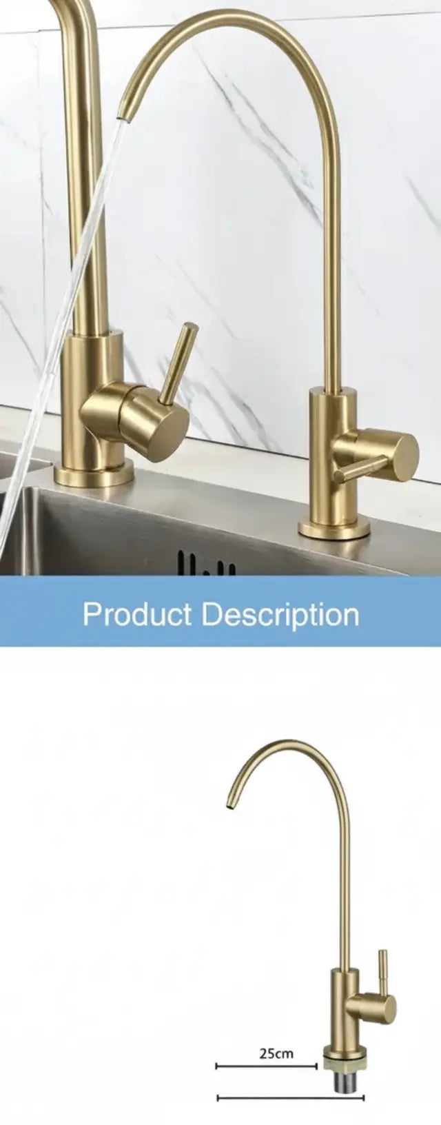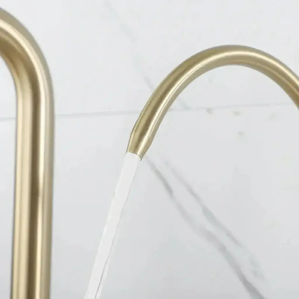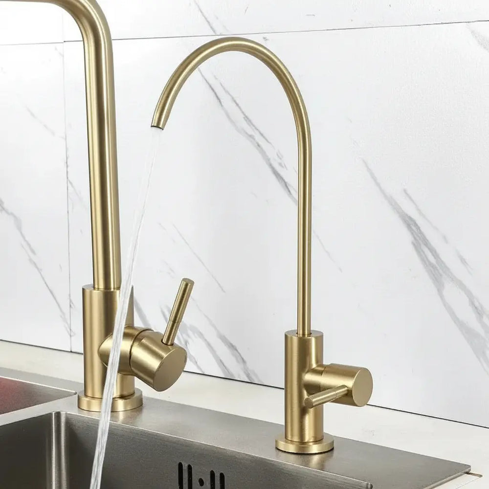 Gefertigt aus hochwertigem Edelstahl, besticht dieser Wasserhahn durch ein zeitgemässes Design, das jede Kücheneinrichtung ergänzt. Sein gebürstetes Gold-Finish verleiht einen Hauch von Eleganz, während der Einhebelgriff eine einfache Bedienung gewährleistet. Der drehbare Auslauf bietet Flexibilität und ist ideal für den täglichen Gebrauch.