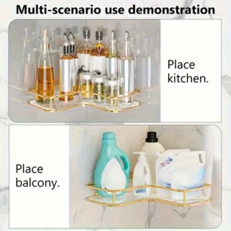 Badezimmerregale Gold wandmontiertes dreieckiges Aufbewahrungsregal aus Acryl für Handwäsche und Waschtisch Badezimmer Toilette Ecke klappbar