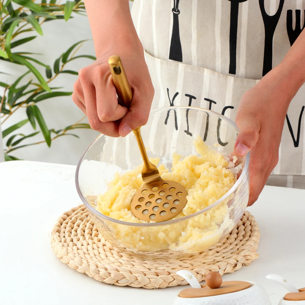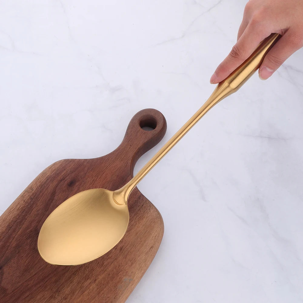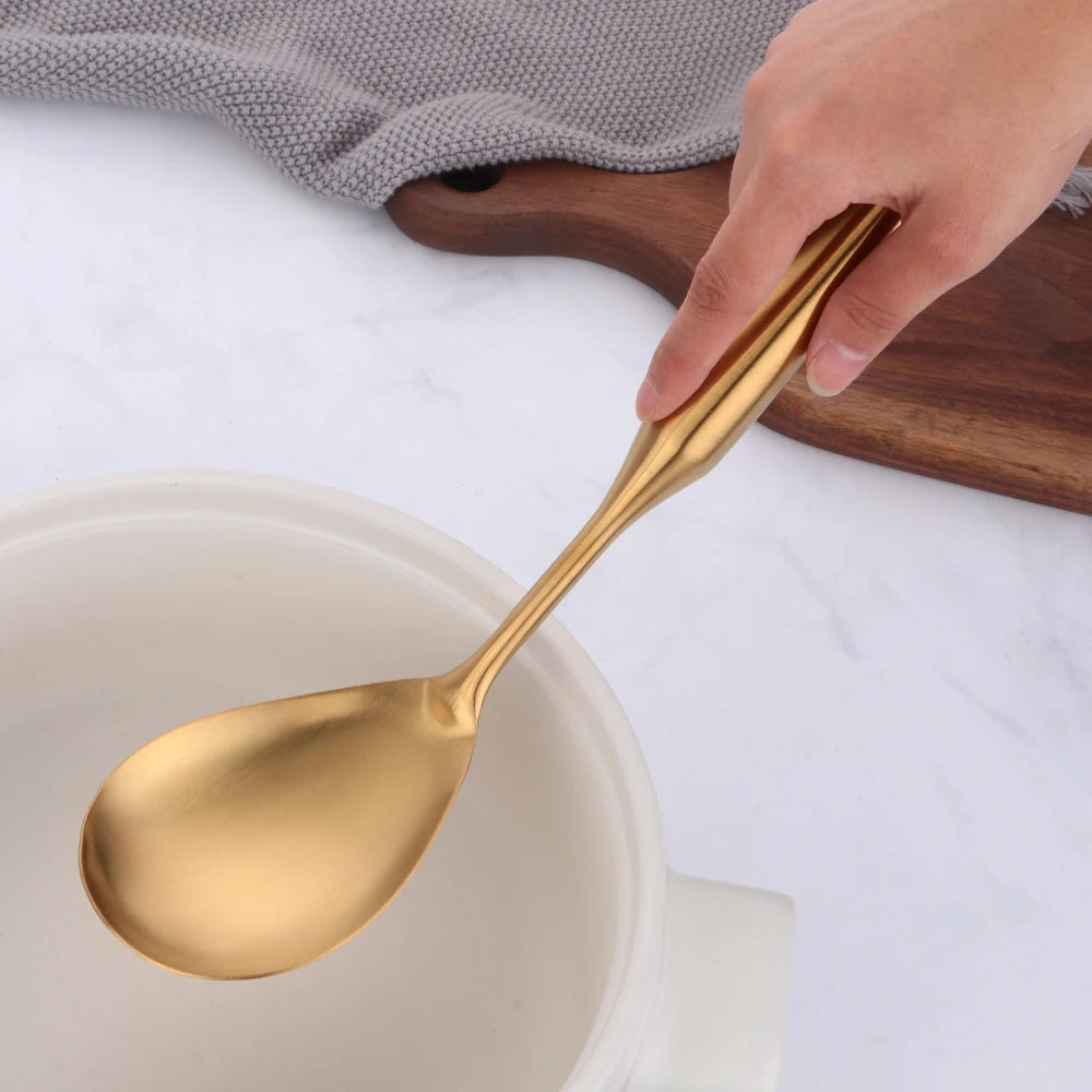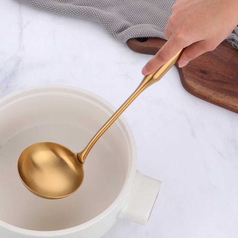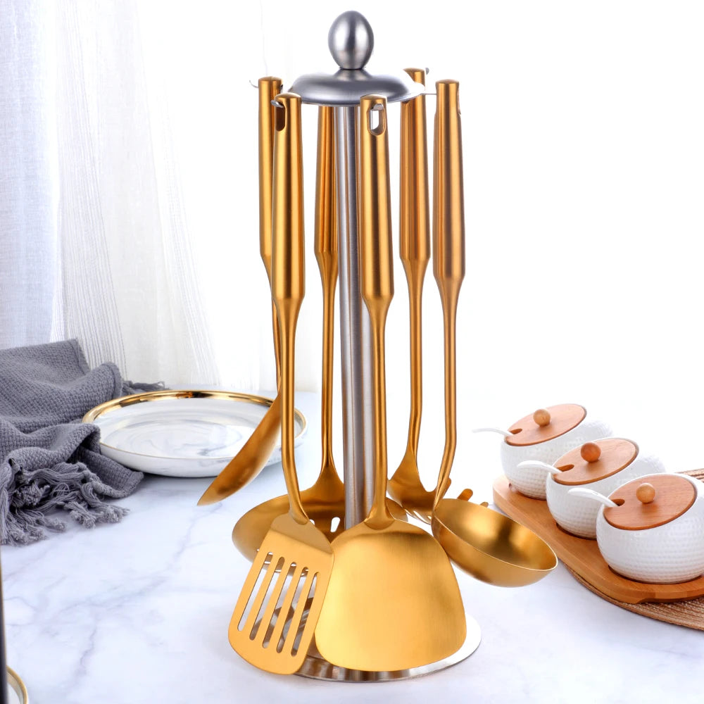Steigern Sie den Stil Ihrer Küche mit unseren goldenen Edelstahl-Kochwerkzeugen. Für Eleganz und Funktionalität entwickelt.