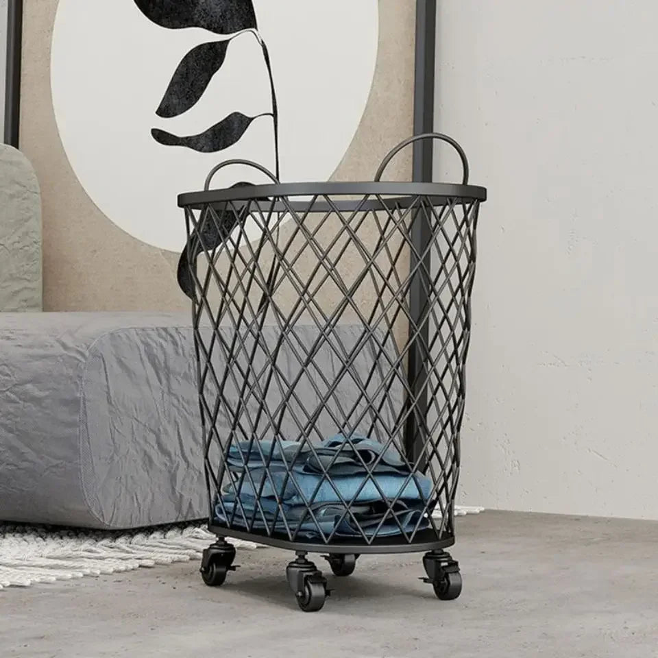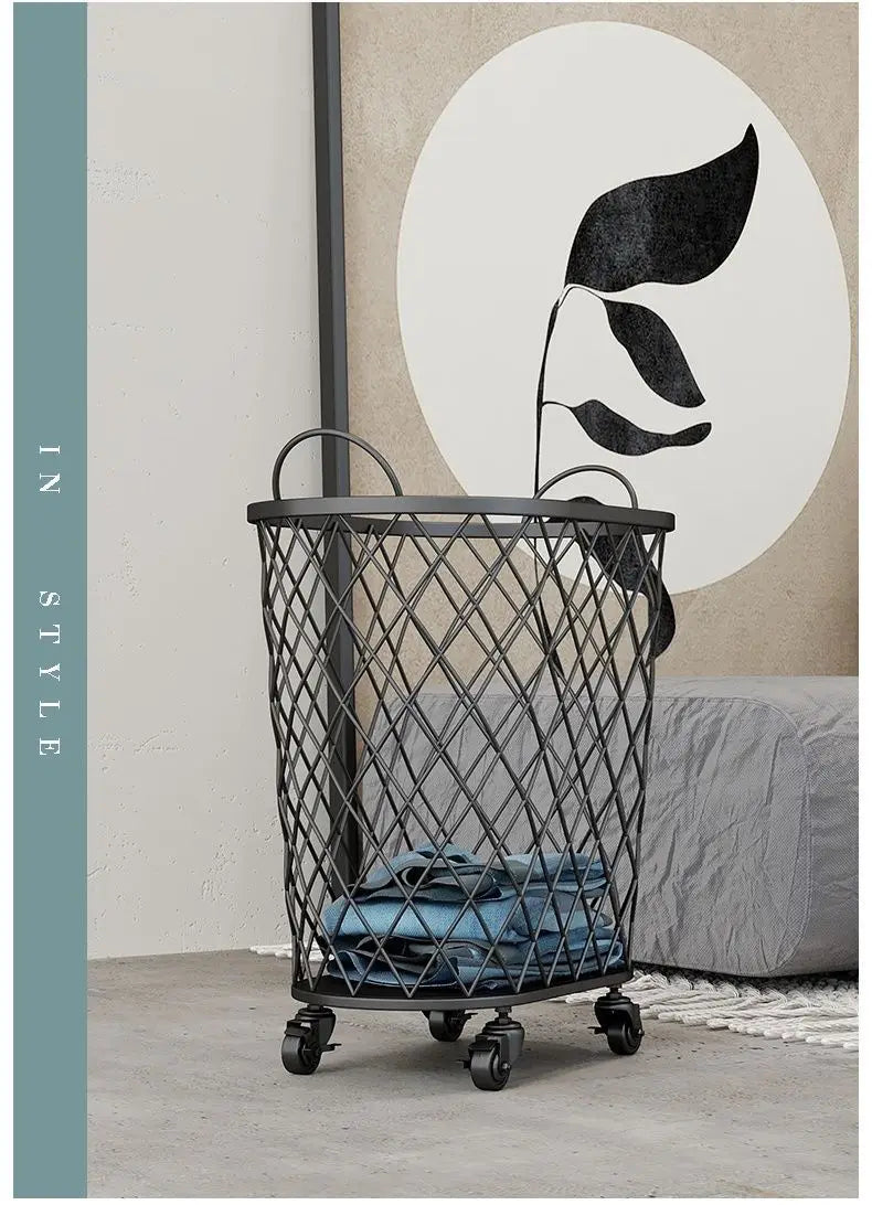 Unser goldener Wäschekorb mit Rollen verbindet Eleganz mit Funktionalität und ist eine eindrucksvolle Ergänzung für jeden Raum.