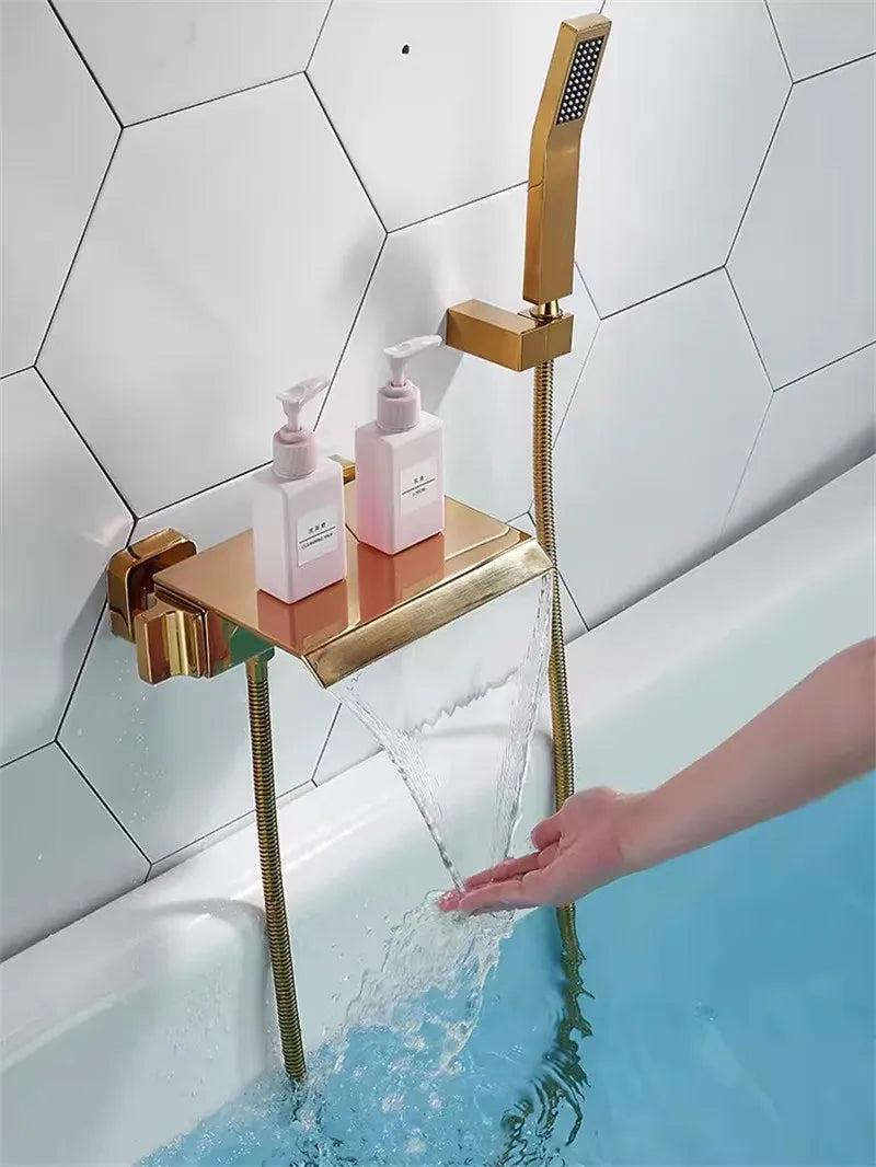 Erhöhen Sie Ihr Badezimmer mit unserem luxuriösen Messing-Wasserfall-Set, das für moderne Eleganz und Funktionalität entwickelt wurde.