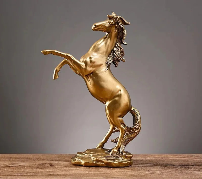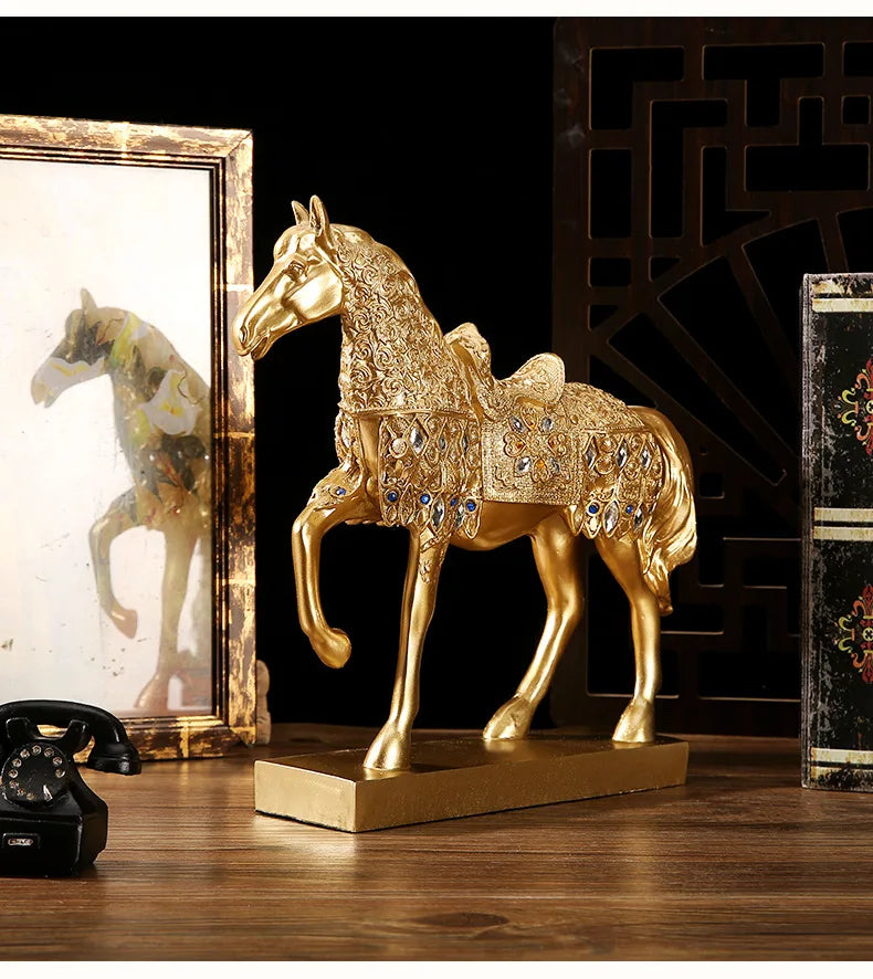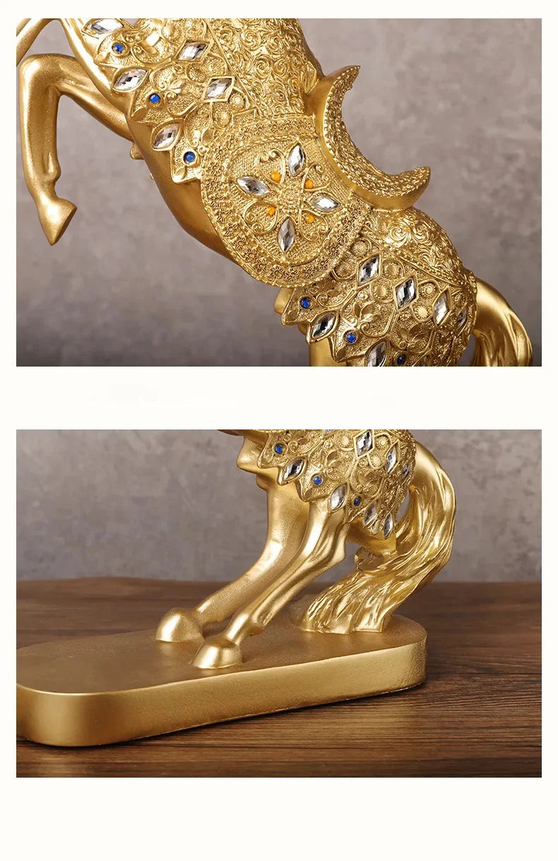 Verleihen Sie mit dem Goldenen Pferd Ornament einen Hauch von Raffinesse, aus hochwertigem Harz für ein luxuriöses Erscheinungsbild.