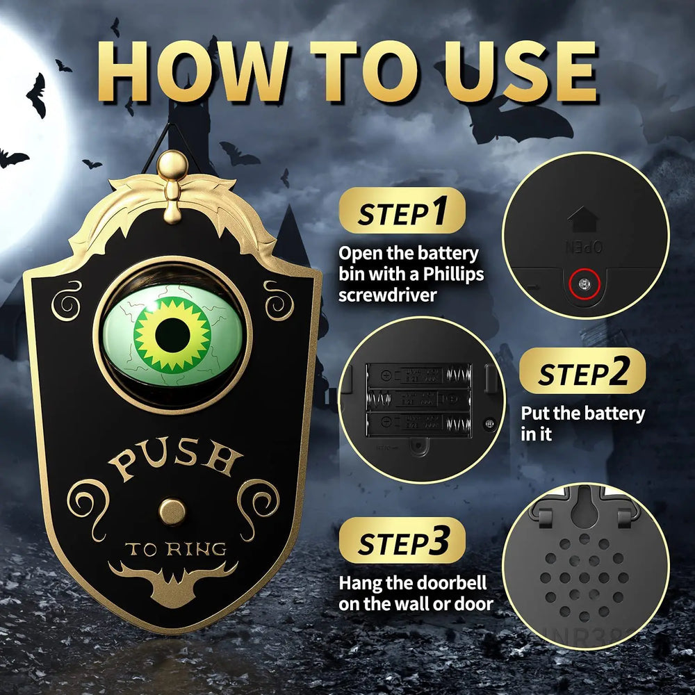 Bringen Sie Leben in Ihre Halloween-Dekoration mit dieser exzentrischen Türklingel, die garantiert unvergessliche Schrecken verbreitet. Ihr fortschrittliches Design sorgt dafür, dass sie sowohl als Dekorationsstück als auch als funktionale Befestigung heraussticht. Platzieren Sie sie an Ihrer Tür und sehen Sie, wie sie zum Gesprächsthema der Nachbarschaft wird.