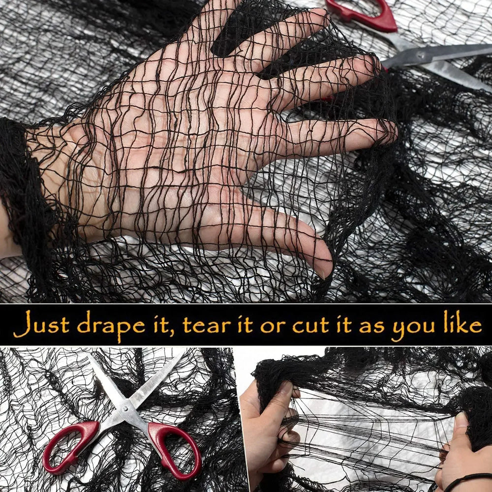Diese schwarze Gaze verwandelt jeden Raum in eine Geisterszene und bietet eine langlebige und flexible Dekorationsoption.