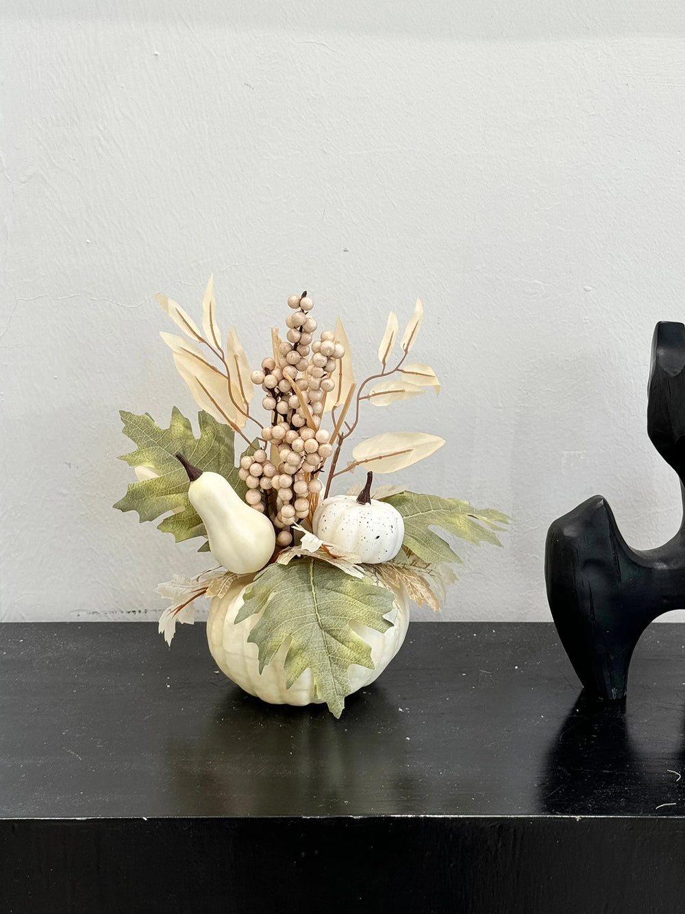 Unsere künstlichen Kürbisse und Ahornblätter fangen die Essenz der Erntesaison ein. Mit einer Grösse von 12.5x29cm passen sie perfekt in jeden Innenbereich und fügen sich nahtlos in andere Dekorationen ein.