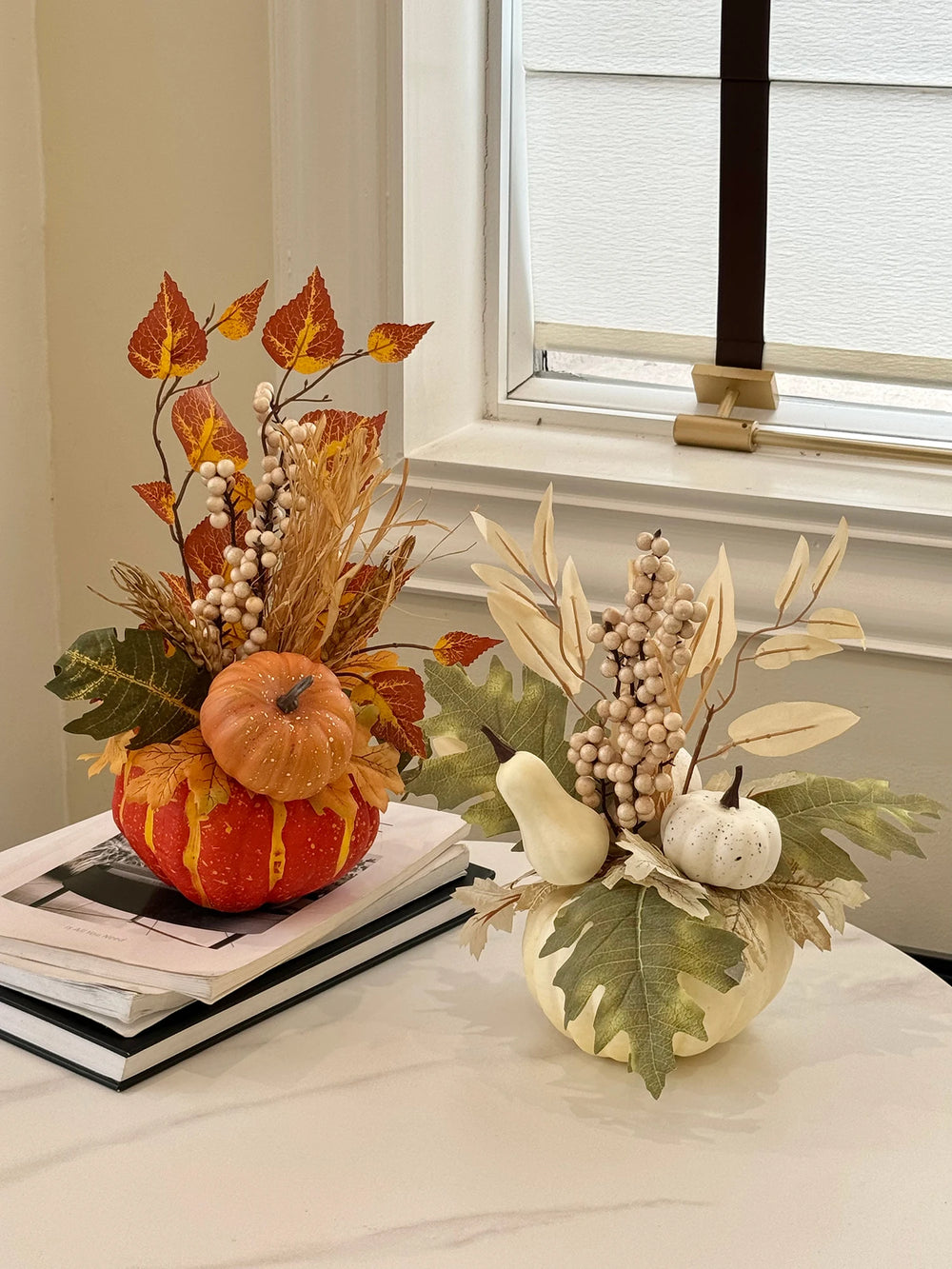 Realistisches Design: Die filigranen Details dieser künstlichen Kürbisse und Blätter machen sie von echten nicht zu unterscheiden und verleihen Ihrer Herbstdekoration einen realistischen Touch.