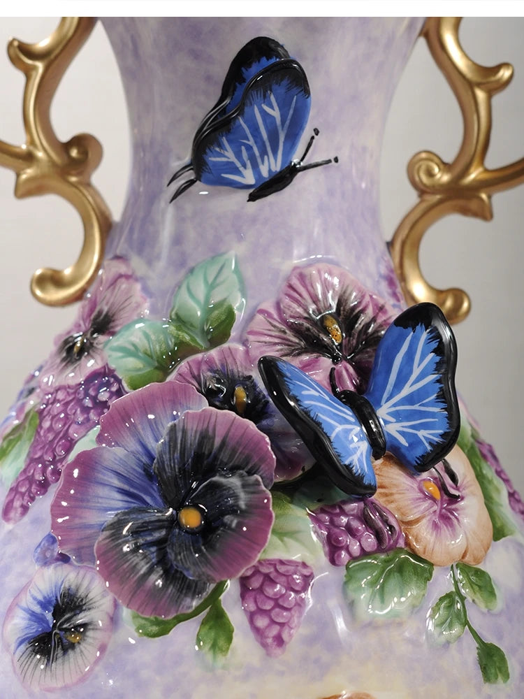 Ja, jede Vase ist einzigartig mit einem Stiefmütterchen-Design handbemalt.