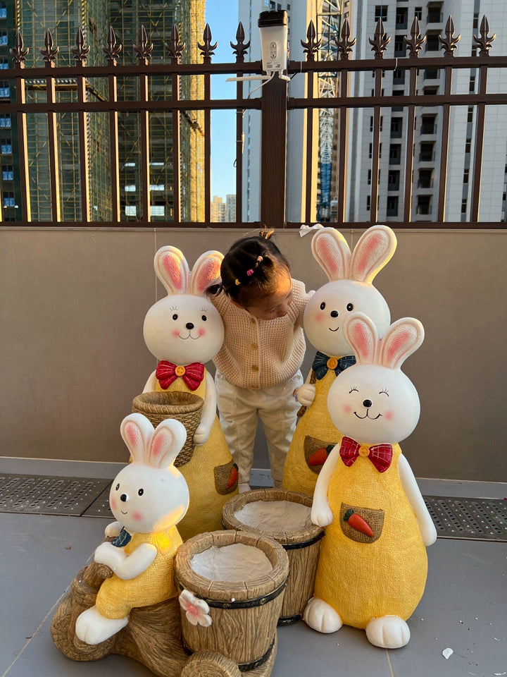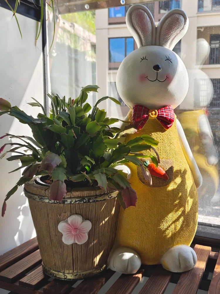 Erfreuen Sie sich am Charme unseres süssen Häschen-Blumentopfs aus Harz, einer bezaubernden Ergänzung für jede Terrasse oder jeden Garten. Sein verspieltes Hasen-Design fügt Ihren Aussenbereichen eine Spur Freude hinzu und bietet gleichzeitig eine optimale Unterstützung für Ihre grünen Begleiter.