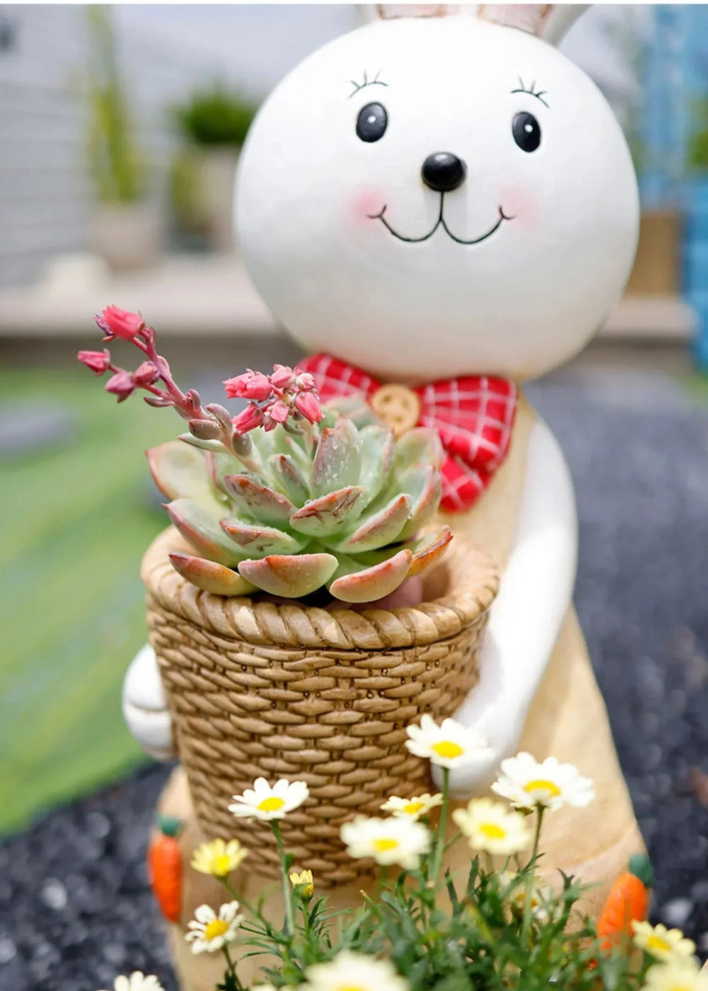 Erleben Sie die Freude der Natur mit unserem Häschen-Harzblumentopf, eine verspielte Ergänzung für jeden Raum. Sein charmantes Design und wetterfeste Eigenschaften machen ihn unverzichtbar im Garten.