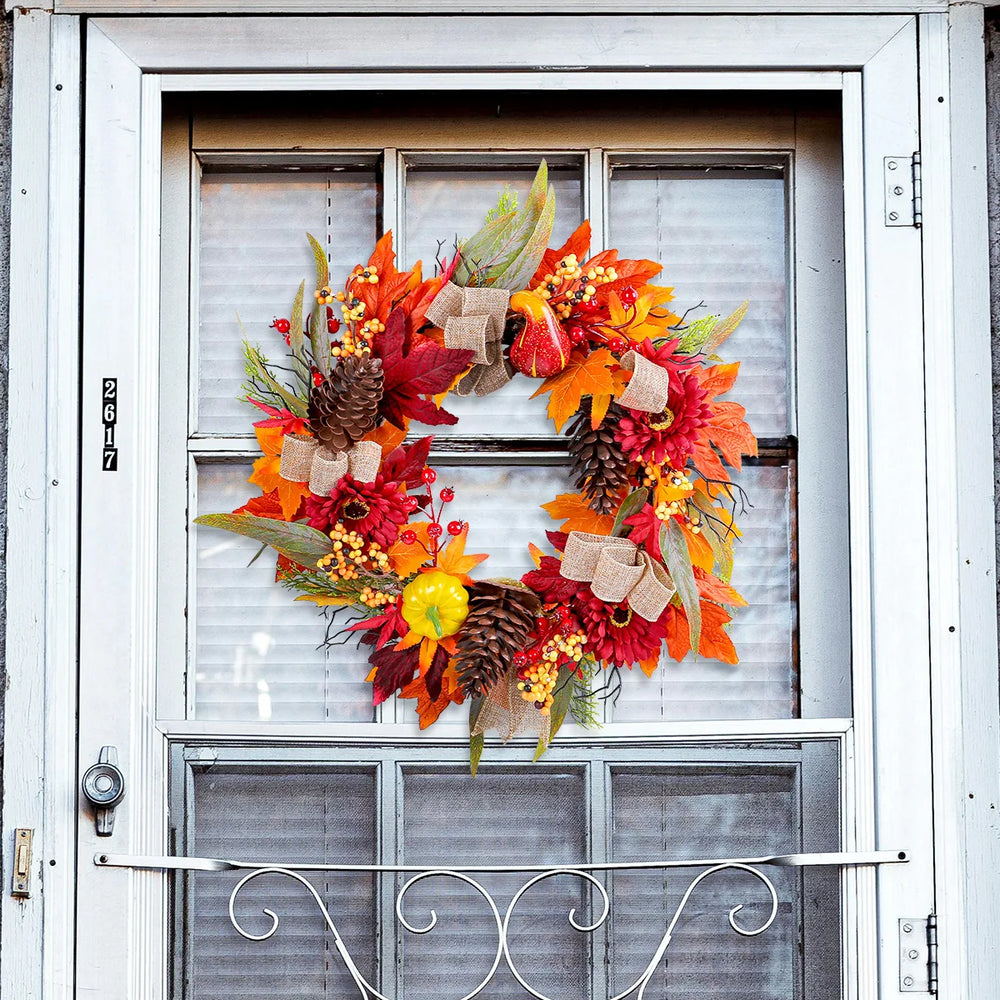 Hängen Sie Ihren Herbstzauber auf: Diese Kränze für Innenräume sind durchdacht gestaltet, um an die meisten Standard-Fronttüren zu passen und bringen mühelos warmen, saisonalen Charme in jeden Raum. Hängende Herbstkränze für die Aussentür sind einfach und bequem – geniessen Sie sofort die gemütliche Wärme und Schönheit des Herbstes.