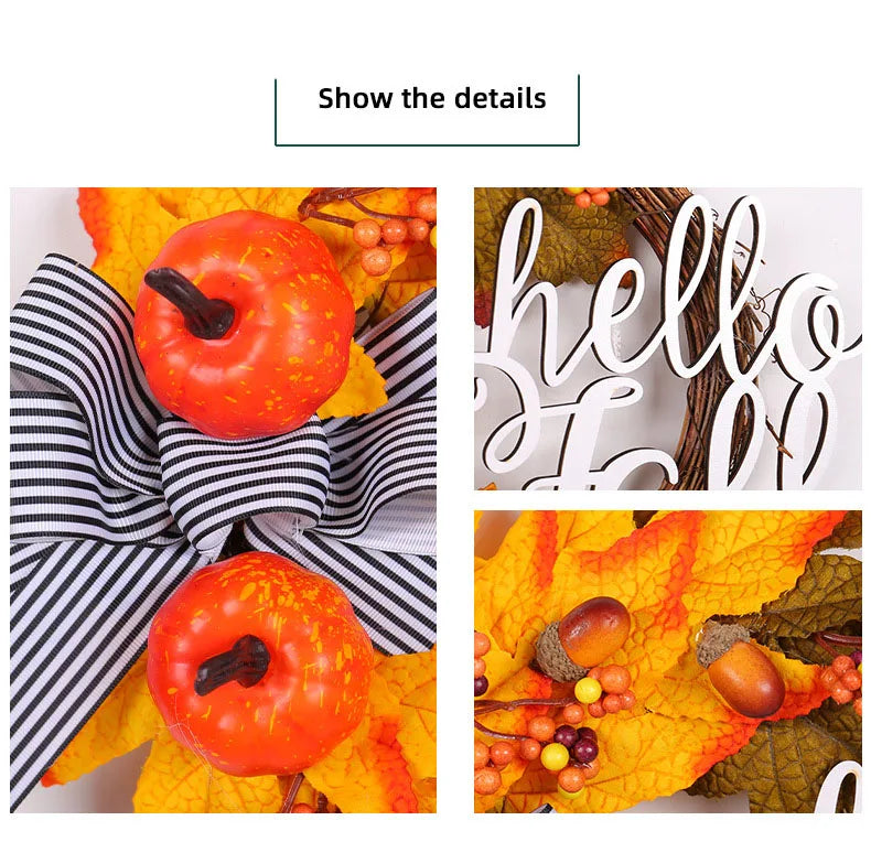 Fügen Sie überall Herbstwärme hinzu: Diese vielseitige Herbstdekoration bringt gemütlichen Charme in Innen- und Aussenräume. Hängen Sie es an Ihre Haustür, Ihren Kaminsims, Ihr Fenster oder Ihre Wand – es fügt sich wunderschön ein und hebt jede Umgebung hervor. Perfekt für Zusammenkünfte, Erntedankfest oder den Alltag, füllen diese Herbstdekorationen für das Zuhause Ihr Zuhause mit der warmen, einladenden Schönheit des Herbstes.