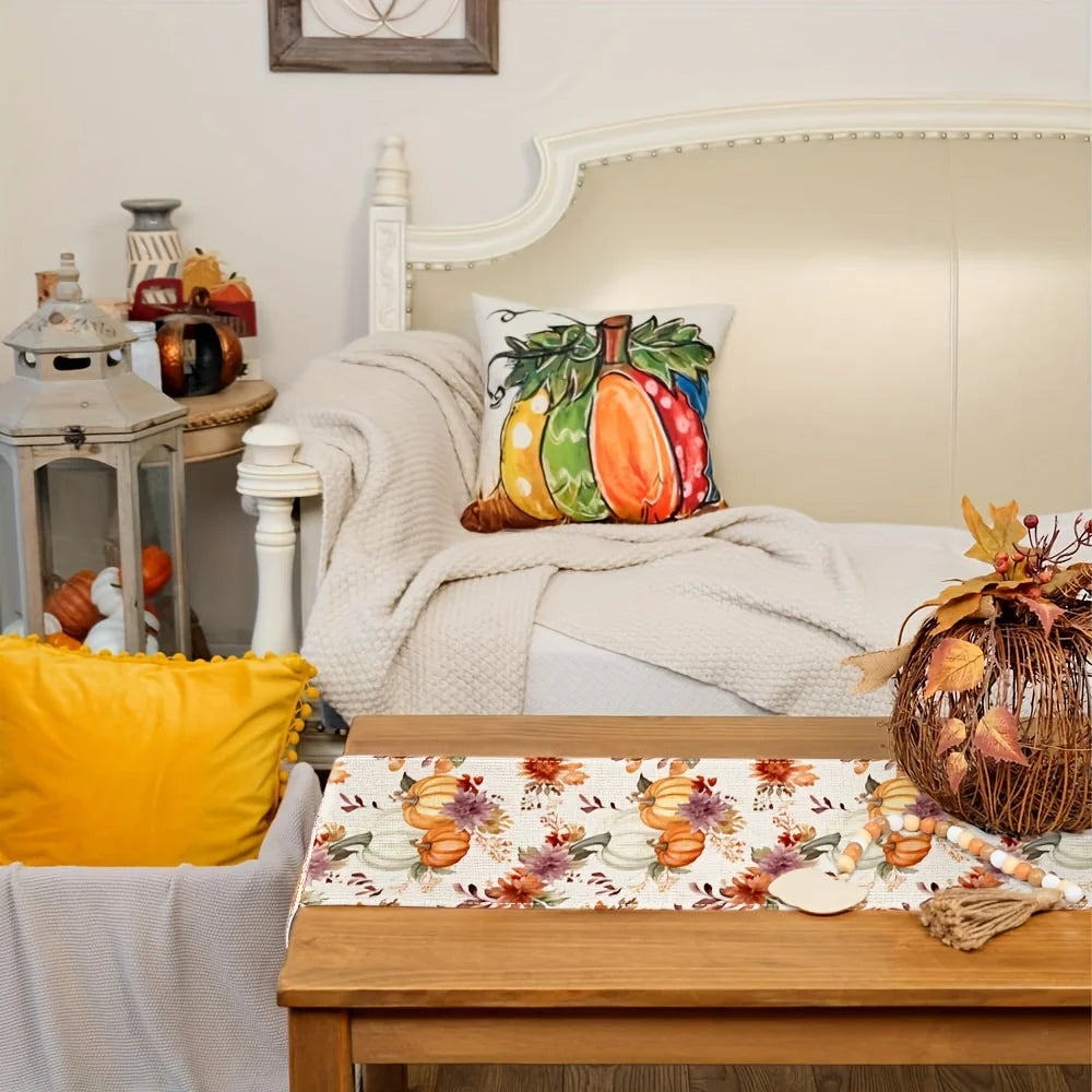 Bereichern Sie Ihre Wohnkultur mit unserem exquisiten Herbstlichen Kürbisläufer. Entworfen, um Ihre Tischdekoration zu erhellen, bringt er Wärme und Lebendigkeit in jede Umgebung.