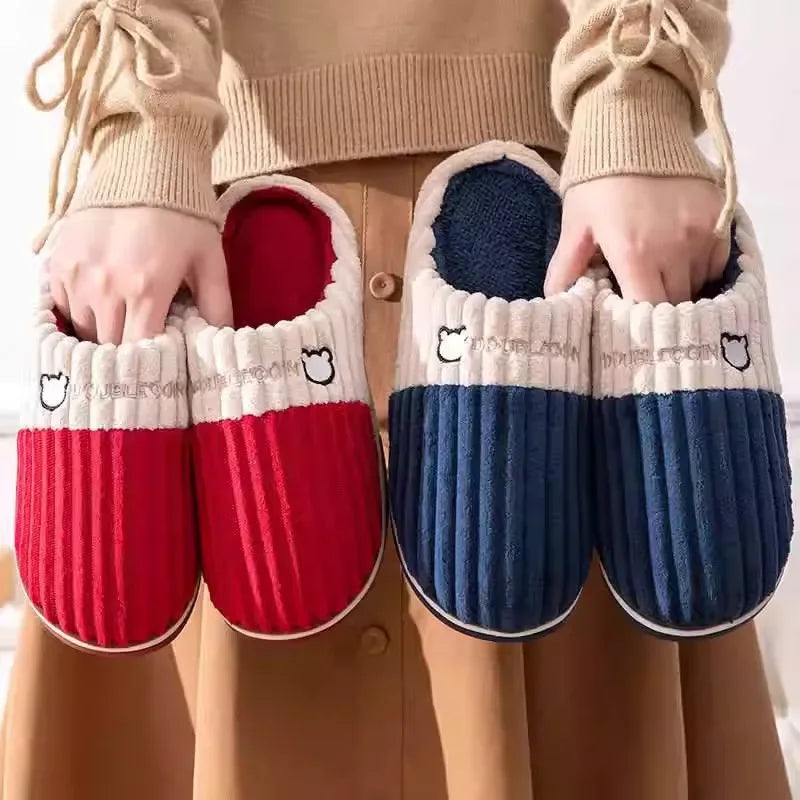 Mit einer Plüscheinlage ausgestattet, bieten diese Hausschuhe optimalen Komfort. Die PVC-Sohle garantiert Stabilität, und das elegante Corddesign macht sie zu einem stilvollen Wohnaccessoire.