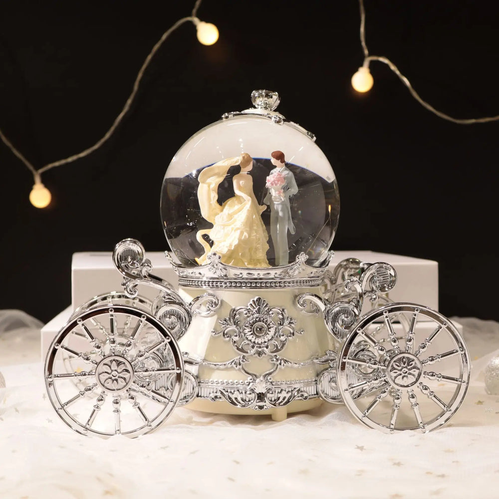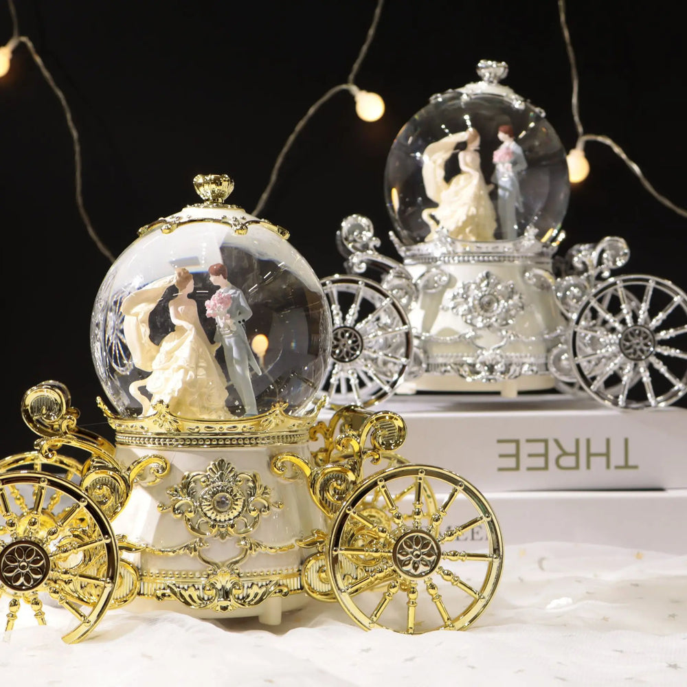 Versetzen Sie sich in eine Welt von Eleganz und Romantik mit unserer Hochzeitskutsche Musikbox. Entworfen, um Herzen zu erobern, ist dieses Stück ein perfektes Geschenk und eine atemberaubende Dekorerweiterung.