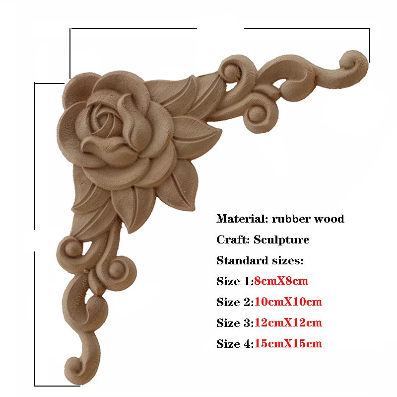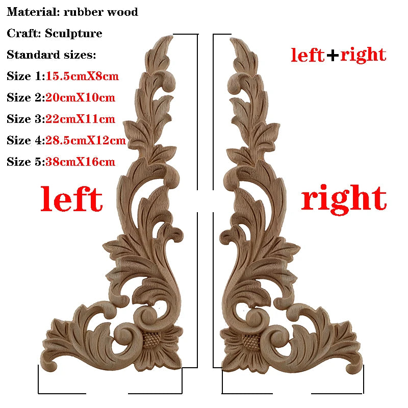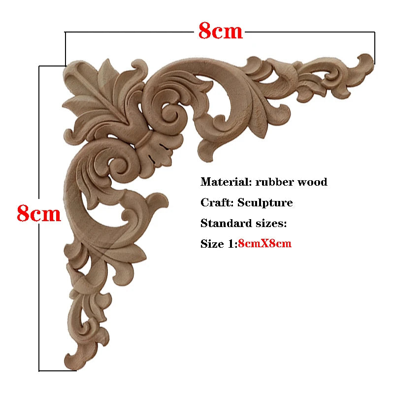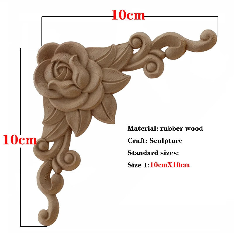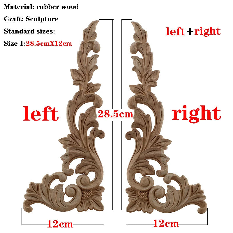 Unsere geschnitzten Holzapplikationen zeigen komplizierte Blumen- und Blätterdesigns, die sorgfältig gefertigt wurden, um nahtlos in eine Vielzahl von Stilen zu passen. Passen Sie sie leicht an Ihren persönlichen Geschmack an, egal ob Sie einen unlackierten Look oder ein bemaltes Finish bevorzugen.