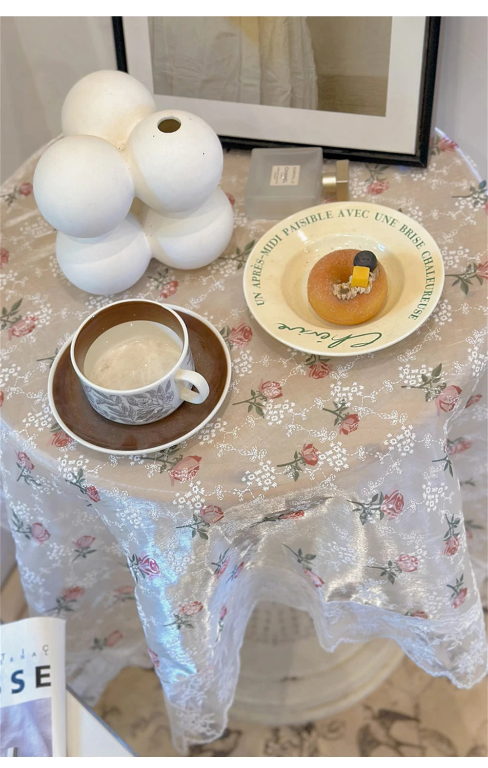 Verwandeln Sie Ihre Tischdekoration mit unserer exquisiten Jacquard Spitzentischdecke, die ein zeitloses Rosenmuster im Retro-Amerikanischen Teezeit-Stil bietet.
