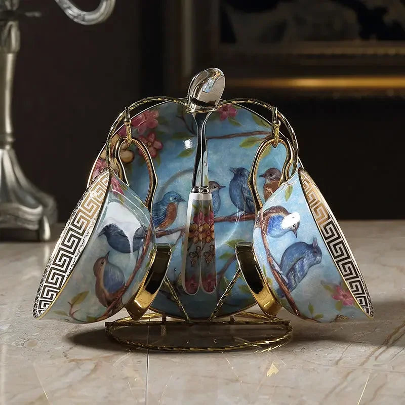 Erleben Sie den Gipfel des Kaffeeluxus mit unserem Blue Bird Knochenporzellan-Kaffeeset, das für Eleganz und bleibendem Eindruck steht.