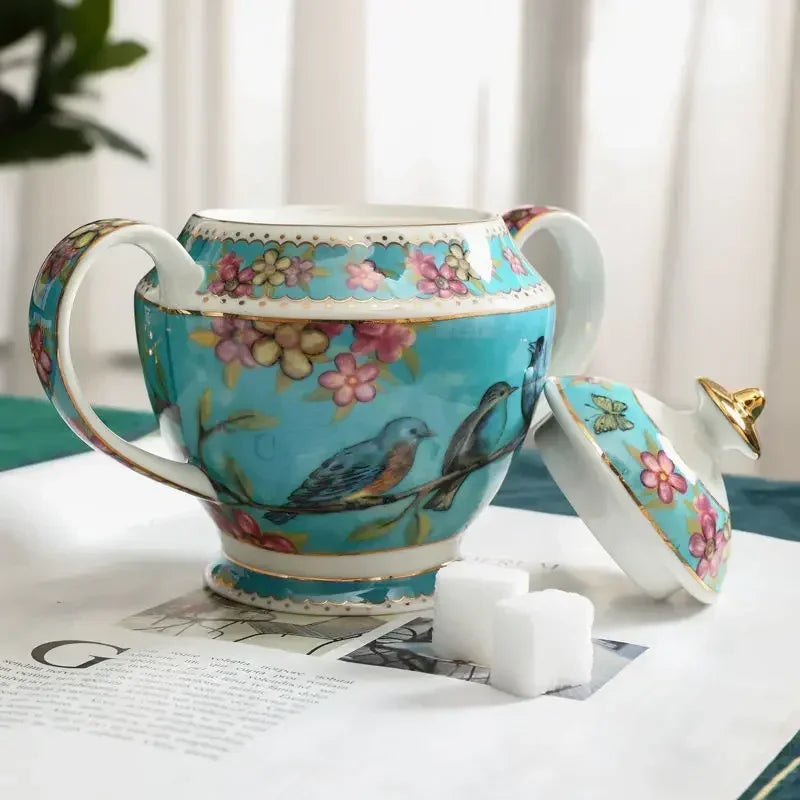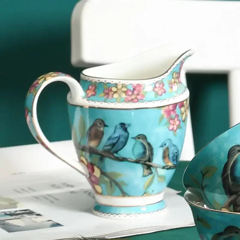 Verleihen Sie Ihrer Kaffeepause einen Hauch von zeitlosem Stil mit unserem eleganten Blue Bird Knochenporzellan-Kaffeeset. Perfekt für Liebhaber der schönen Dinge im Leben.