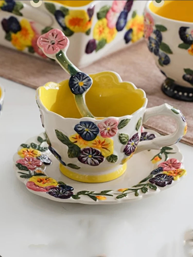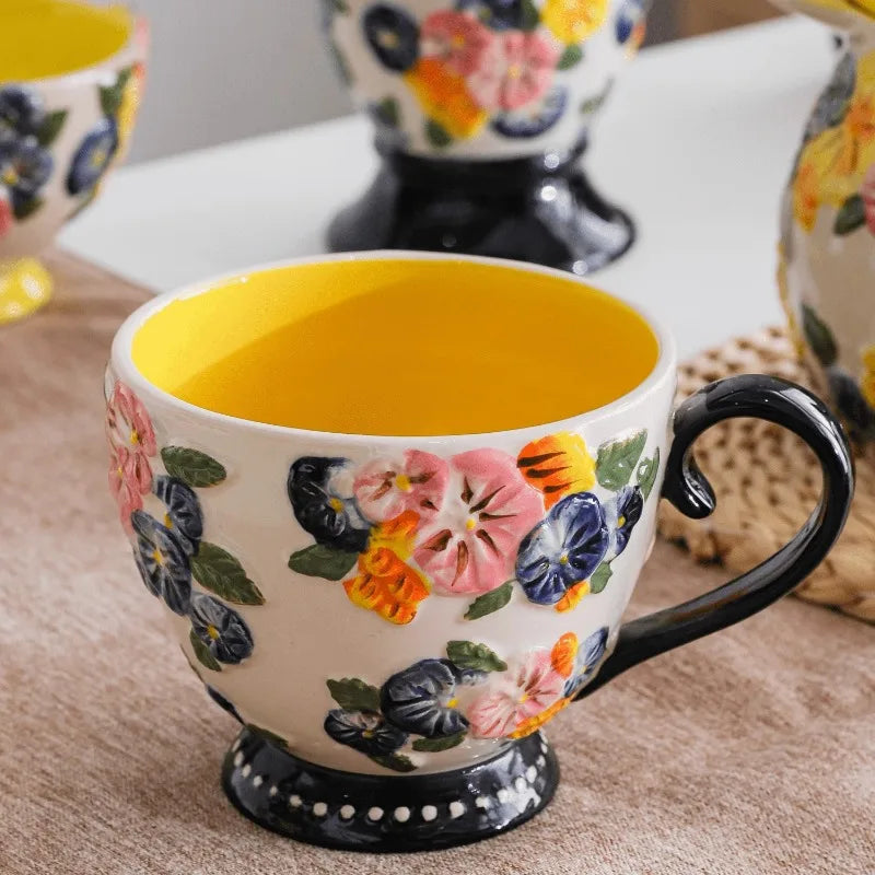 Unsere Kaffeetasse präsentiert ein beeindruckendes 3D-Relief-Blumendesign und fasst bis zu 400ML Ihres Lieblingsgetränks. Aus hochwertigem Keramikmaterial gefertigt, ist sie ideal für umweltbewusste Verbraucher, die nachhaltige und stilvolle Entscheidungen schätzen.