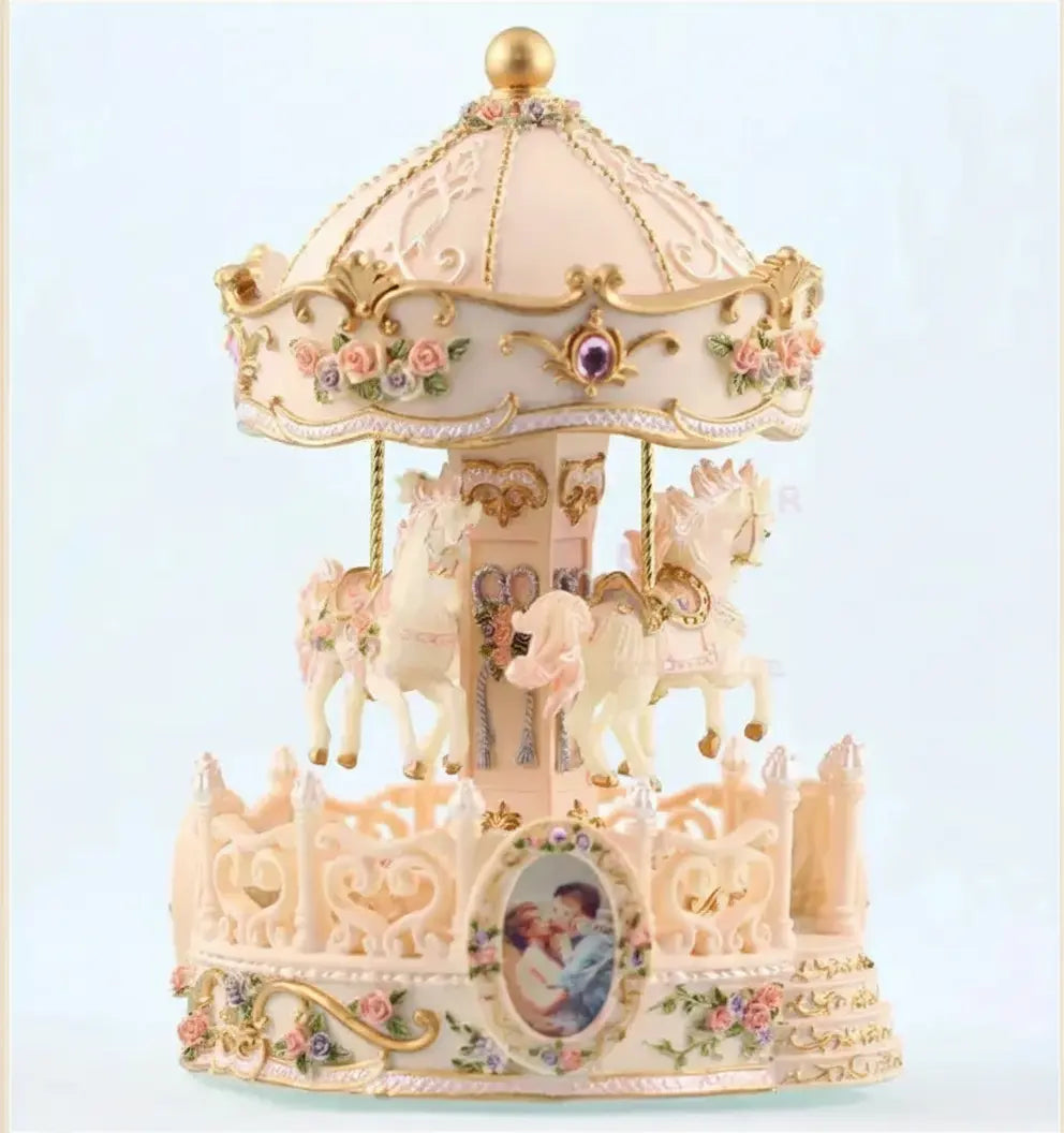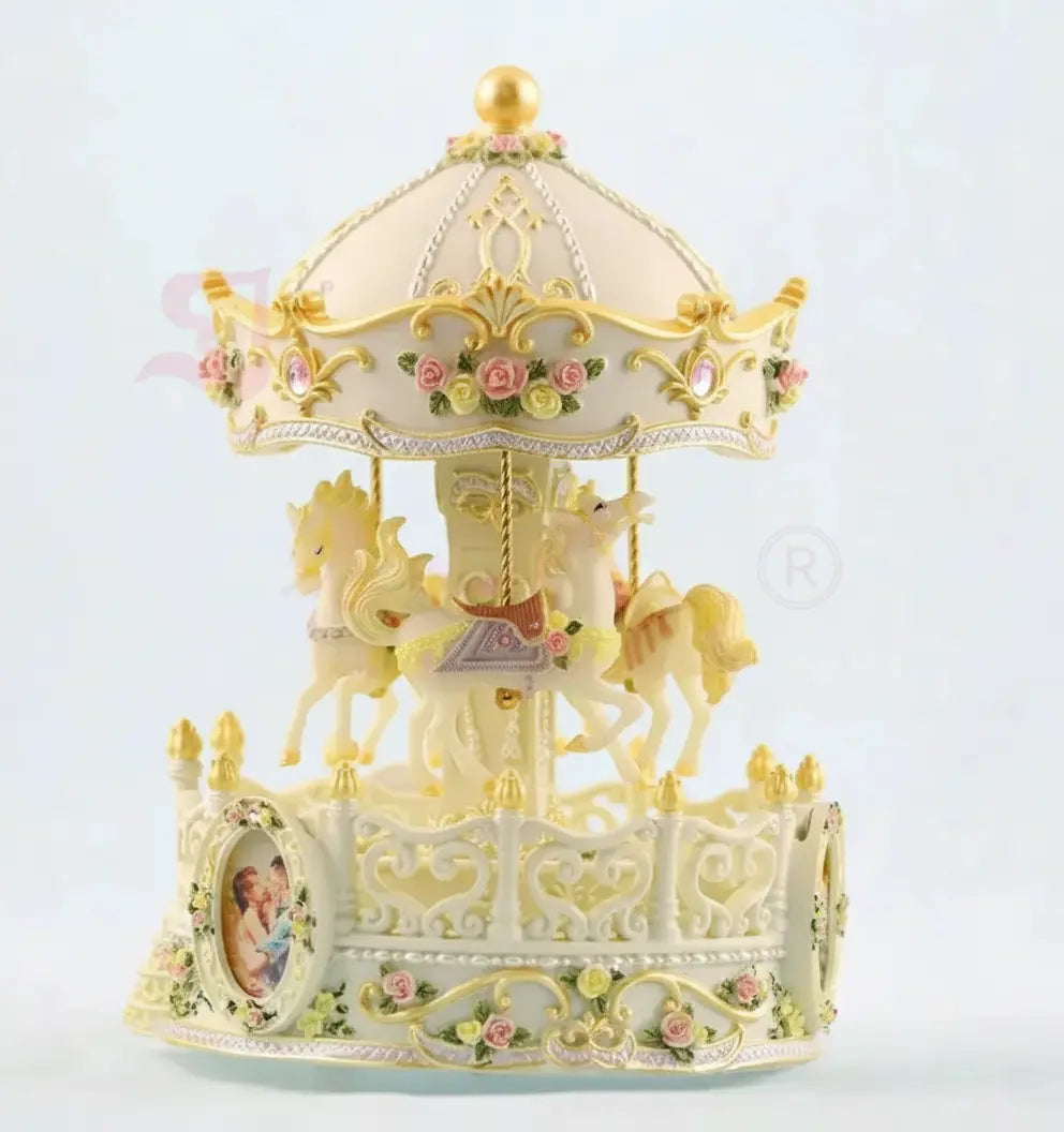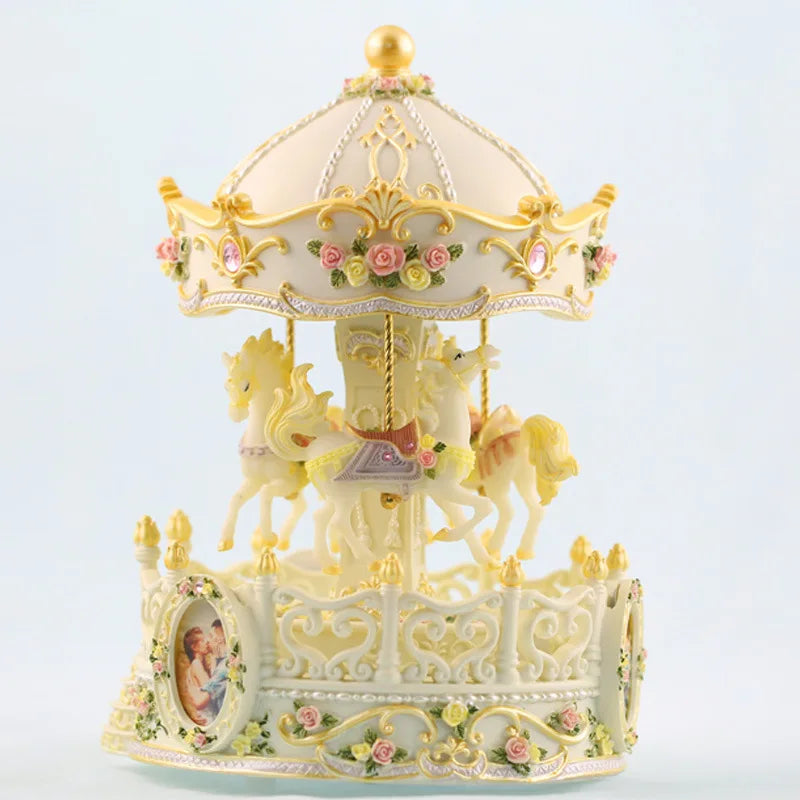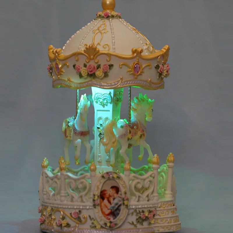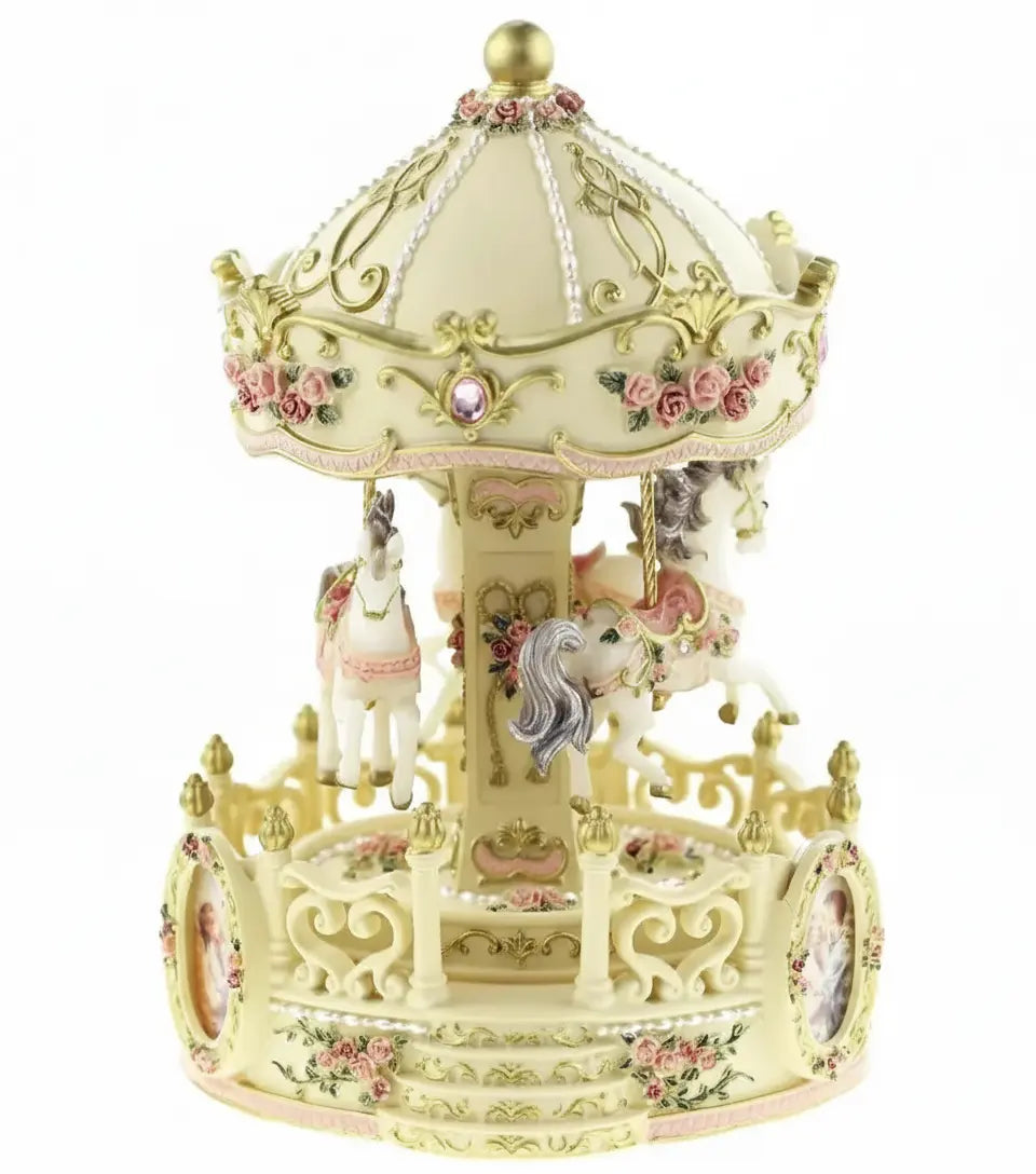 Unsere bezaubernde Karussell-Spieluhr verleiht jedem Anlass einen Hauch von Magie und ist das perfekte Geschenk für Geburtstage oder Weihnachten.
