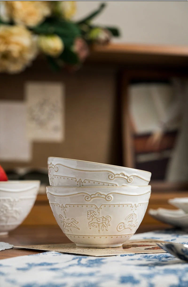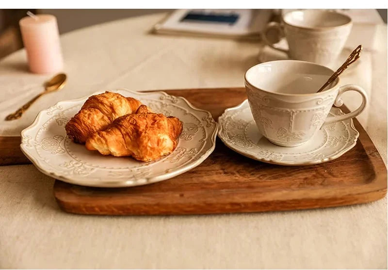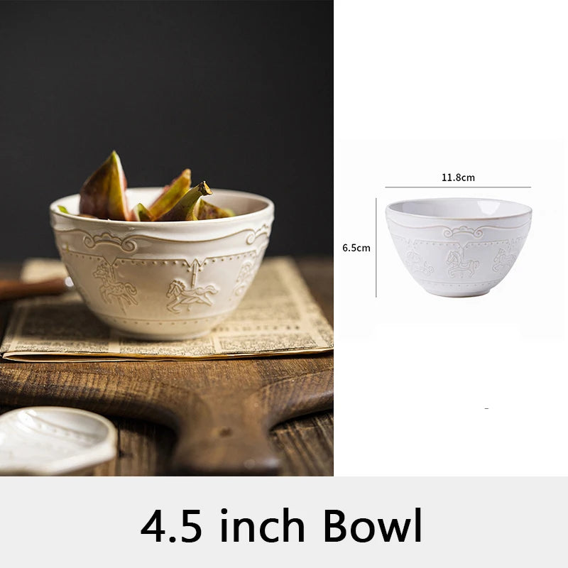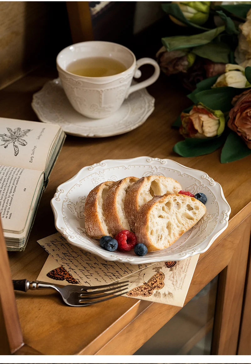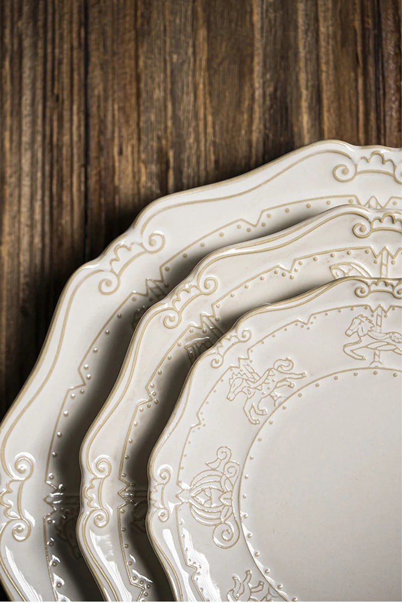 Bereichern Sie Ihr Esserlebnis mit unserem Keramikgeschirrset, das handgefertigtes Reliefdesign und vielseitige Off-White-Ästhetik bietet.
