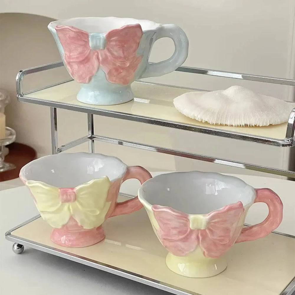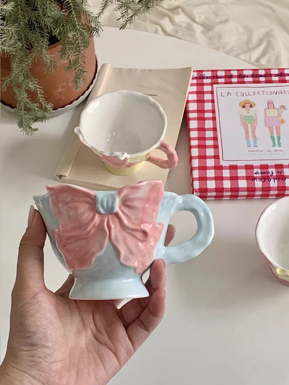 Erleben Sie die Faszination handwerklichen Designs mit unserer handbemalten Keramik-Kaffeetasse, die einzigartig für gemütliche Kaffeemomente gefertigt wurde. Ihr elegantes Schleifen-Design verleiht jedem Ambiente einen Hauch von Raffinesse.