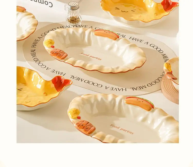 Bringen Sie Freude und Persönlichkeit auf Ihren Tisch mit unserer verspielten Cartoon-Keramik-Plate-Kollektion. Für alle, die einzigartige Dekorationen mit einem Hauch von Laune schätzen.