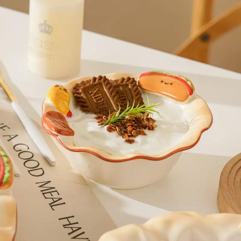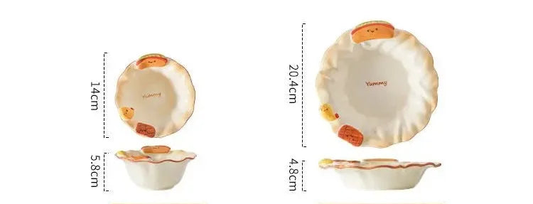 Ideal zum Servieren von Frühstück, Reis, Salat oder Joghurt, sind diese Platten perfekt für jede Gelegenheit. Ihr charmantes Cartoon-Design und die vielseitige Form machen sie zu einer herausragenden Ergänzung Ihrer Tischkollektion.
