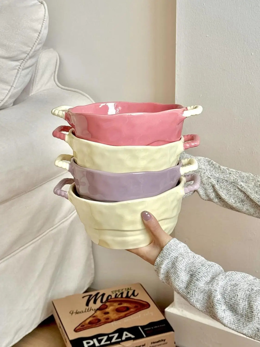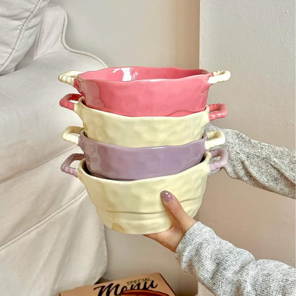 Erleben Sie Eleganz und Praktikabilität mit unserer doppelohrigen Keramikschüssel, perfekt für verschiedene Gerichte.