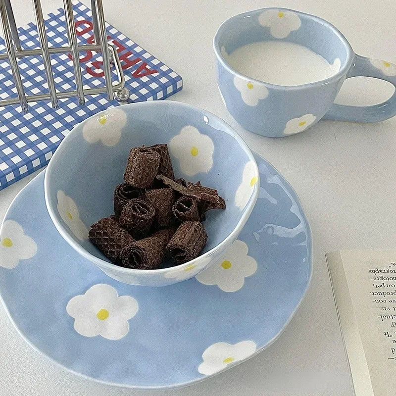 Mit einem 8-Zoll-Teller, einer 5-Zoll-Schale und einer 300ml-Tasse in Handarbeit aus hochwertiger Keramik gefertigt. Das florale Unterglasurdekor ist nicht nur charmant, sondern auch splitterfest für langanhaltenden Gebrauch.