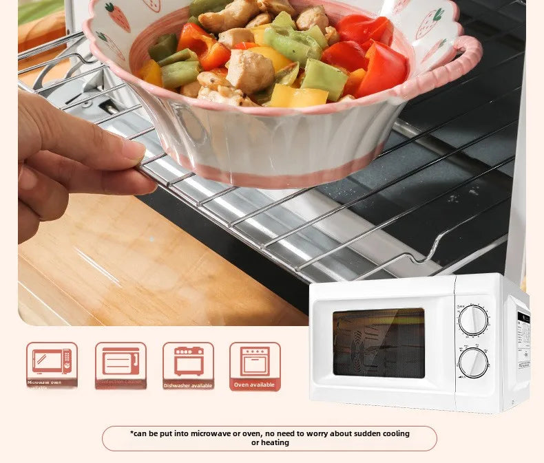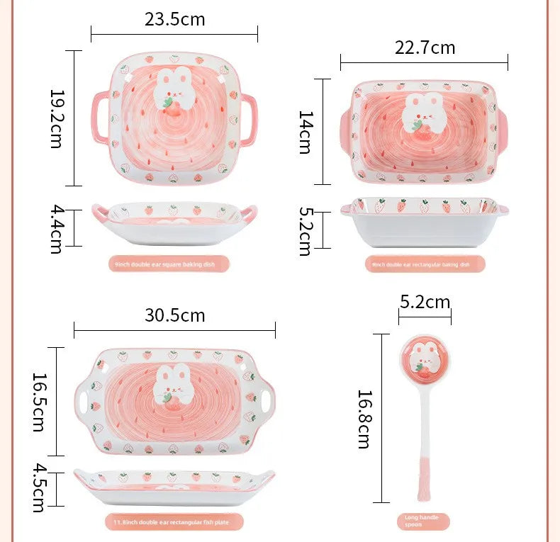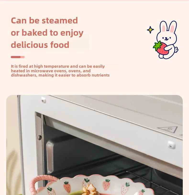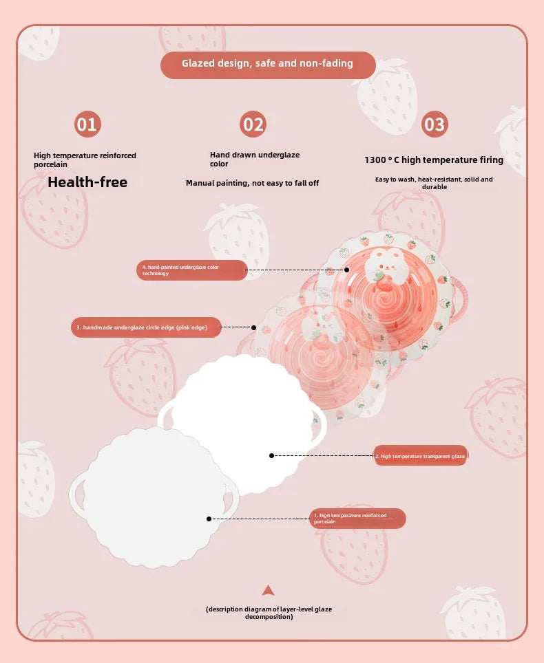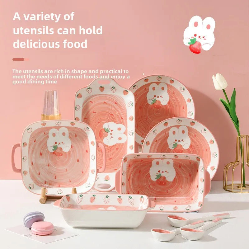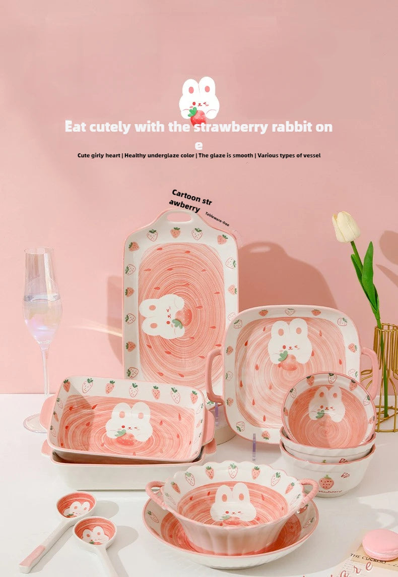 Verleihen Sie Ihrem Esserlebnis mit unseren charmanten Keramikschalen eine verspielte Eleganz. Diese Schalen mit einem verspielten Unterglasurdesign aus Erdbeeren und Kaninchen sind perfekt für jeden Anlass.