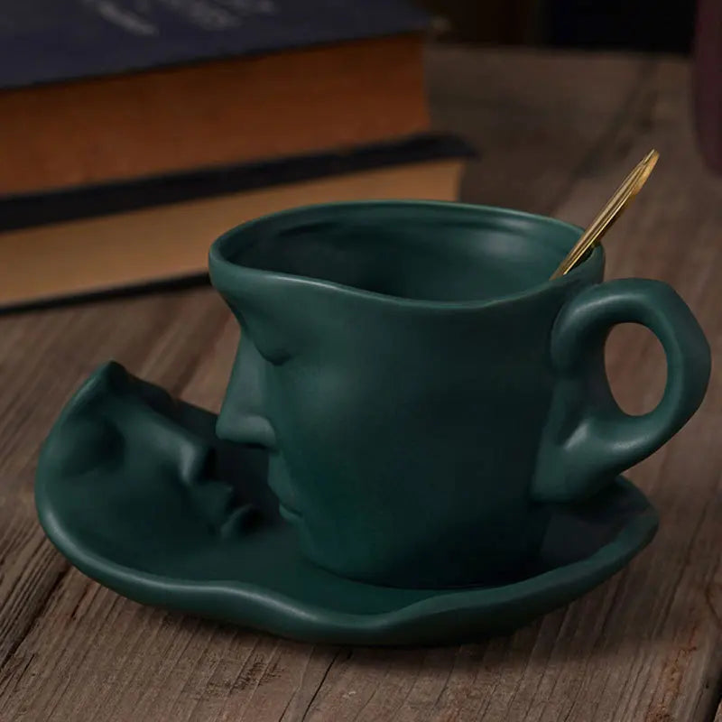 Produkt: Abstrakte Gesichtskunst Kuss Keramik Tasse Untertasse mit Löffel Set