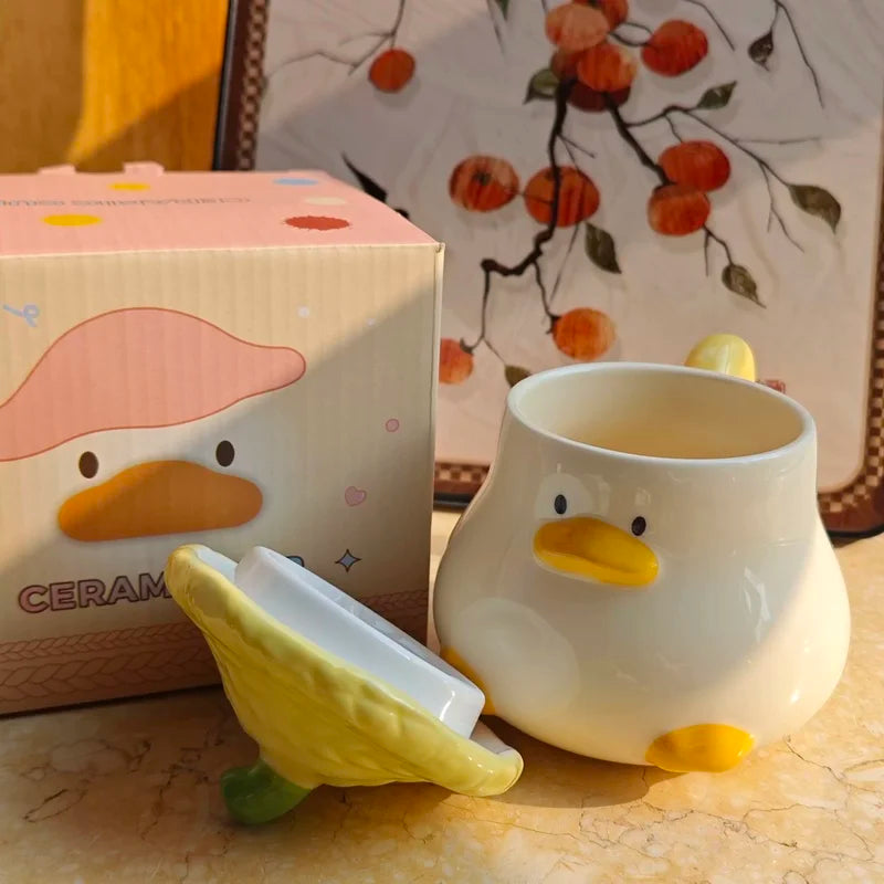 Verleihen Sie jedem Morgen Freude mit unserer niedlichen Cartoon-Enten-Keramiktasse. Perfekt, um Ihrem Frühstück oder Kaffeepause etwas Spass zu verleihen.