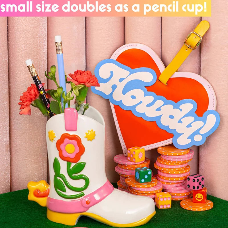 Holen Sie sich einen Hauch von Farbe und Verspieltheit in Ihre Dekoration mit unserer Keramik-Vase im Cartoon-Boots-Design. Perfekt für moderne Interiors.