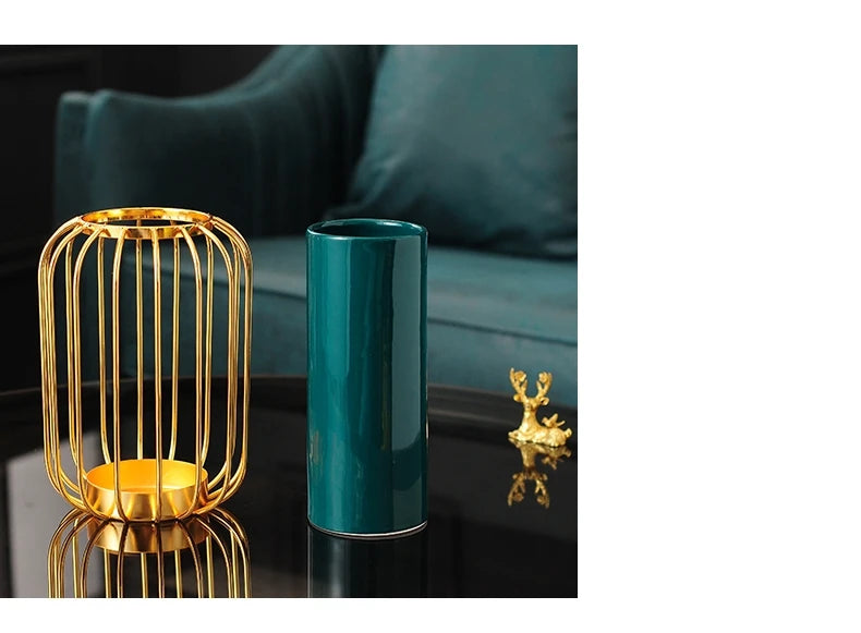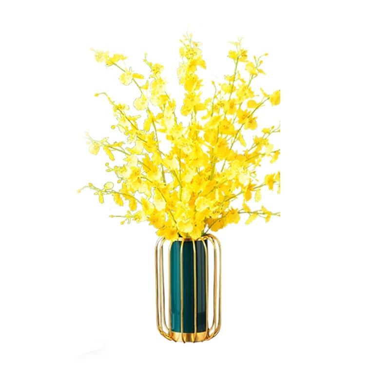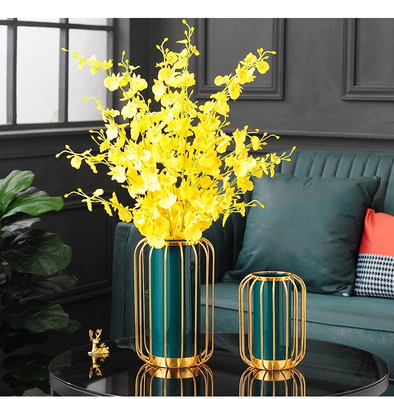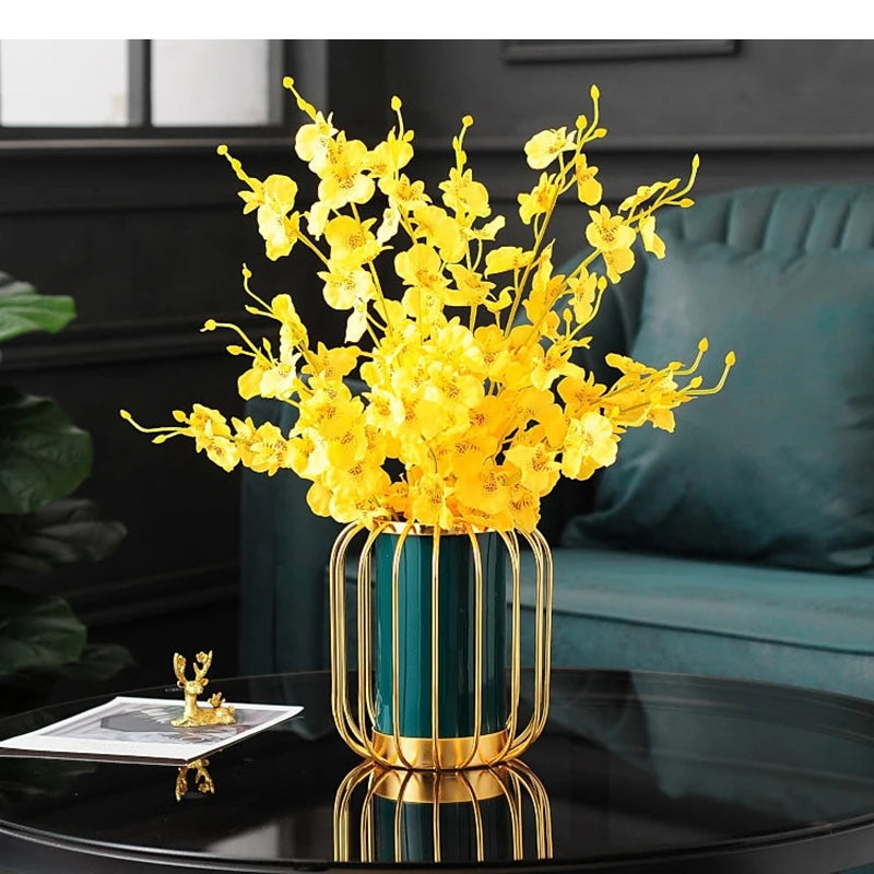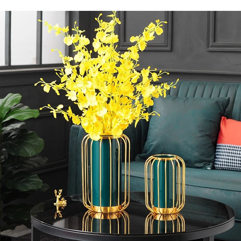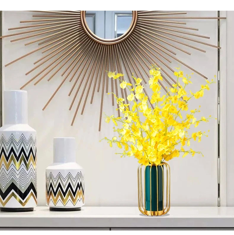 Diese moderne Keramikvase mit Metallrahmen verleiht jedem Raum Eleganz.