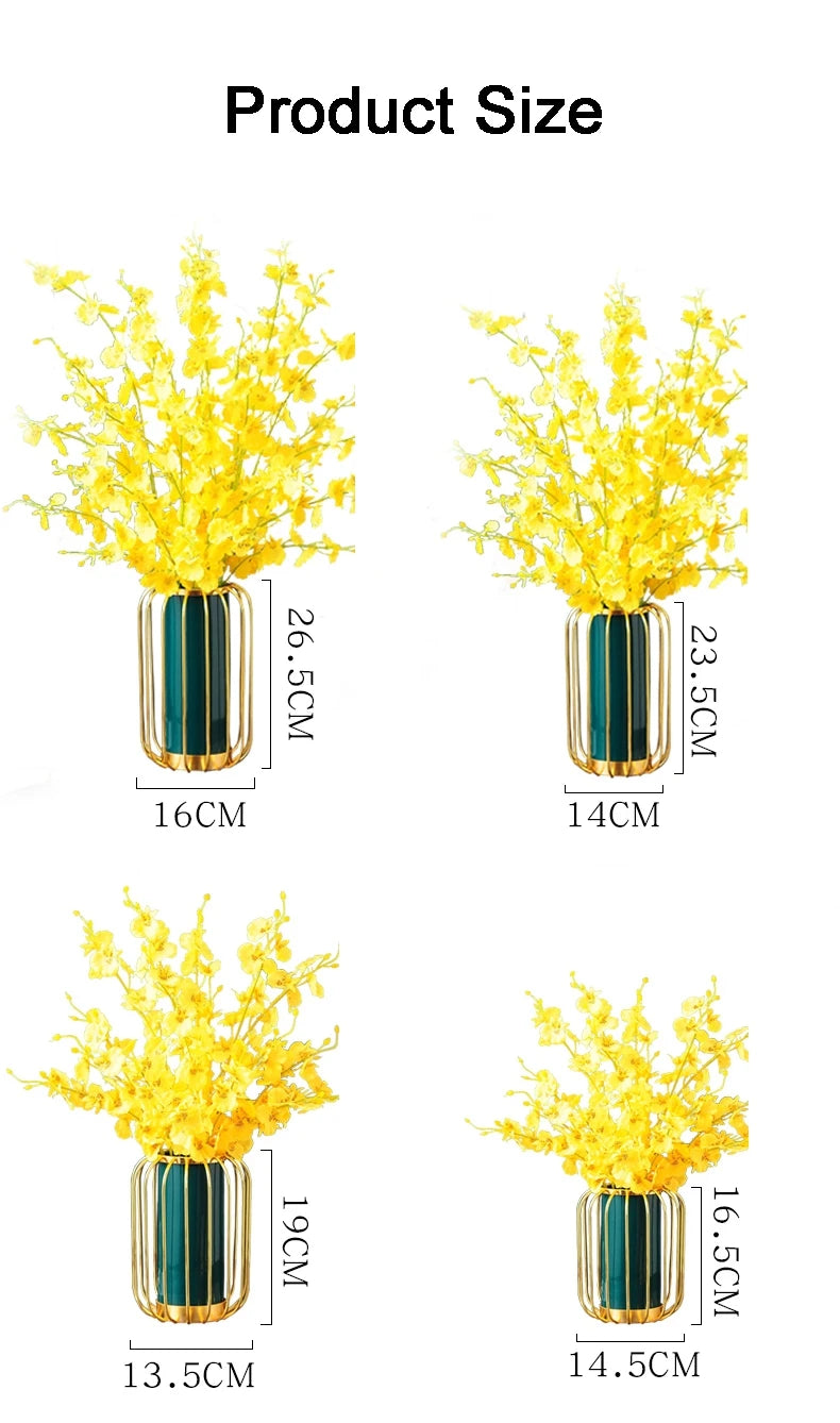 Verleihen Sie Ihrem Wohnbereich mit unserer modernen Keramikvase in einem eleganten Metallgestell neuen Glanz. Perfekt für Ihre Lieblingsblumen.