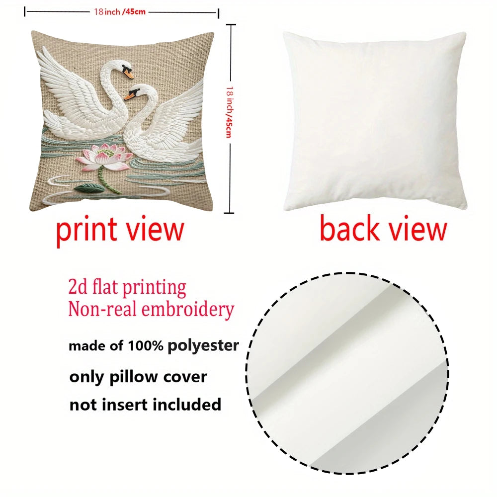 Dieser mit Schwanen-Muster bestickte Kissenbezug verleiht jedem Raum Eleganz und Funktion, bietet Stil und Vielseitigkeit.