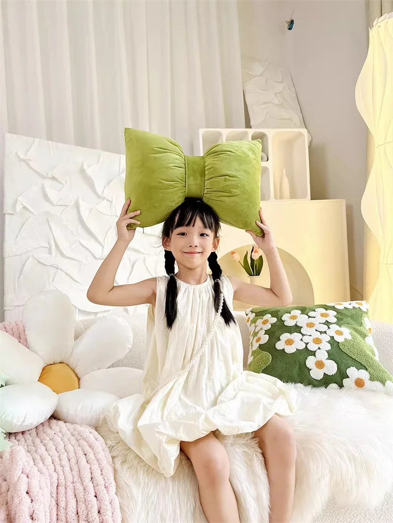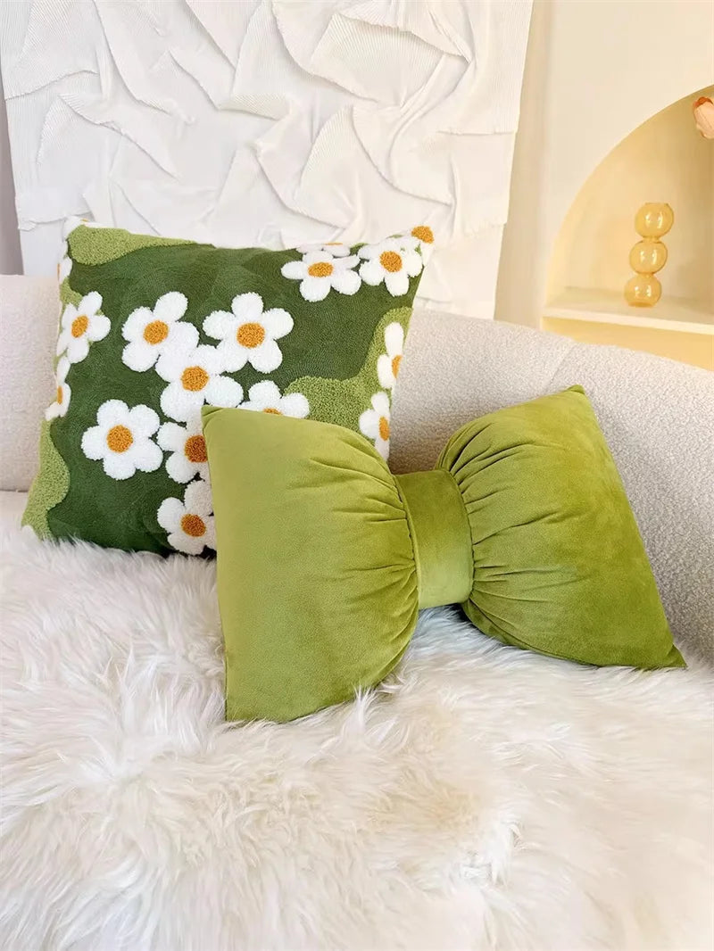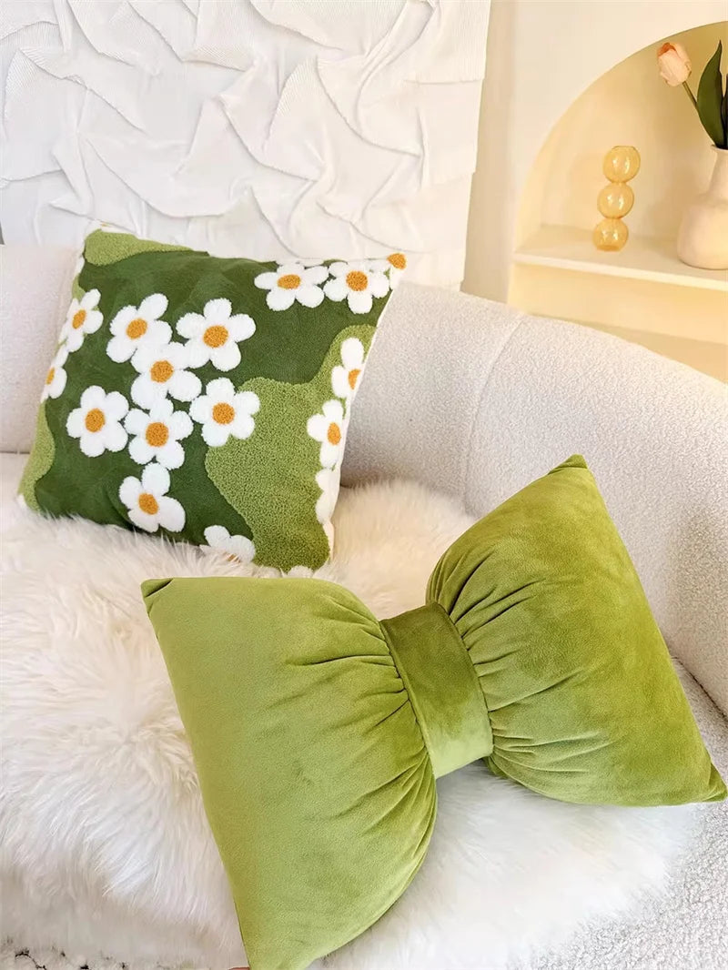 Ideal um Ihrem Bett, Sofa oder Stuhl eine dekorative Note zu verleihen, ist dieser Kissenbezug vielseitig und passt sich nahtlos an verschiedene Innenräume an. Sein elegantes Schleifendetail und die sanfte, grüne Farbe verleihen eine frische und einladende Ausstrahlung.