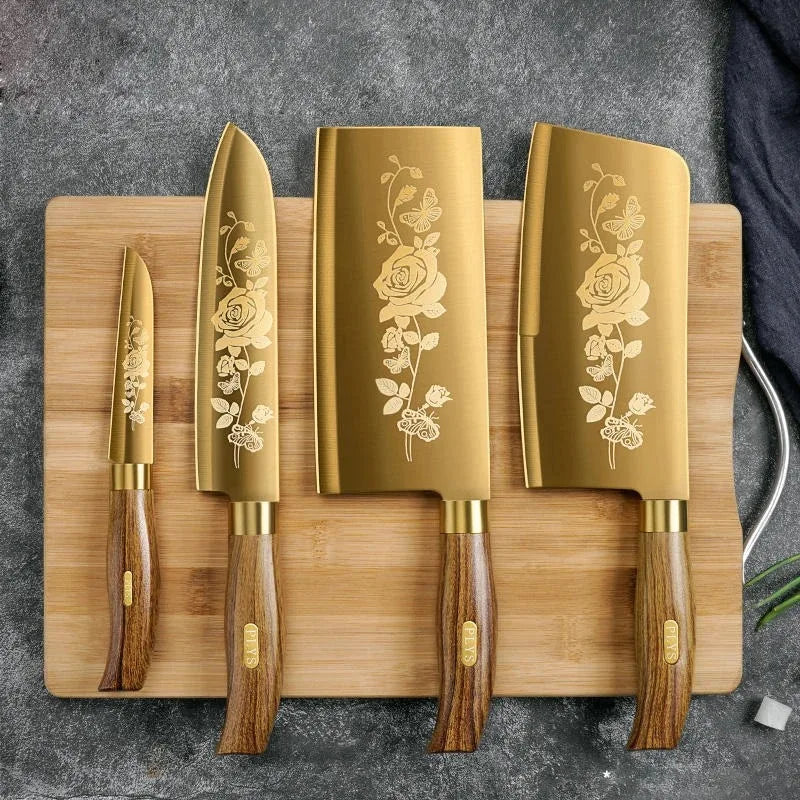Erleben Sie die Kunst der kulinarischen Präzision mit unserem Rose Titanium Messer. Eine Mischung aus Luxus und Praktikabilität für Ihre Küche.