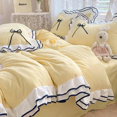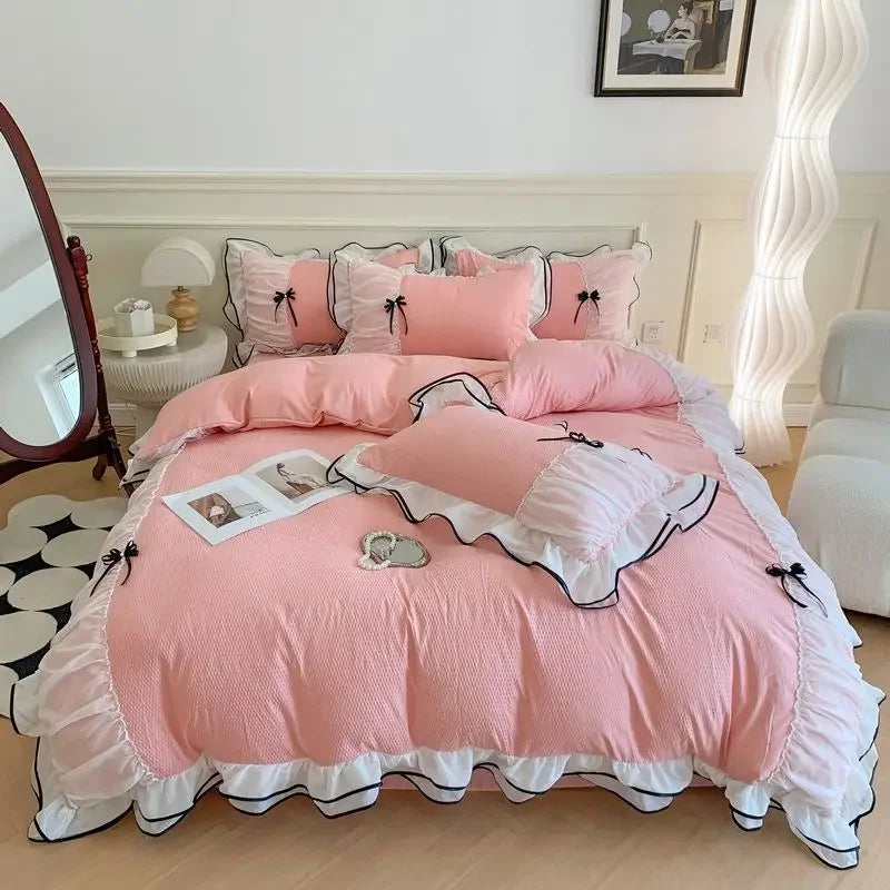 Umarmen Sie Luxus und Komfort mit unserem Korean Princess Bettwäsche-Set. Verwandeln Sie Ihr Schlafzimmer in ein Heiligtum, wo Eleganz auf Gelassenheit trifft.