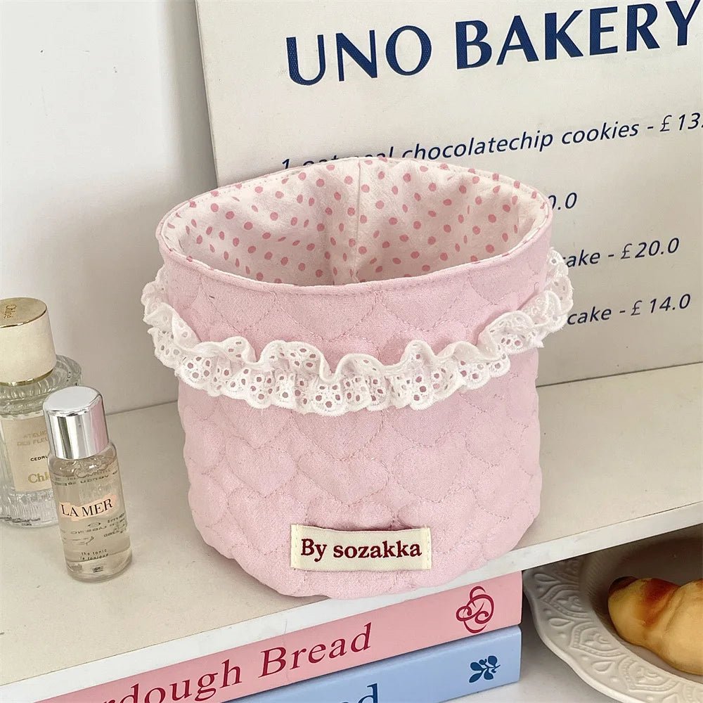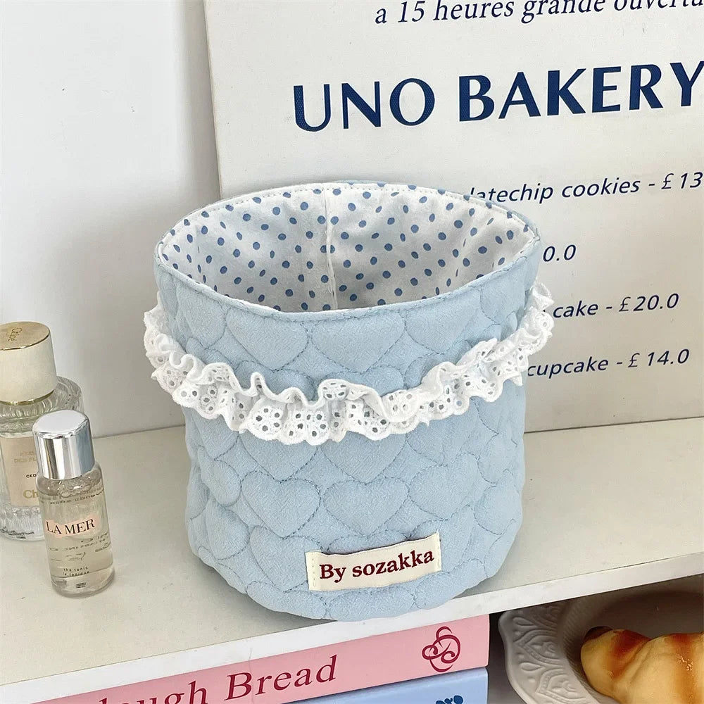 Verwandeln Sie Ihren Schreibtisch oder Schminktisch in eine schicke, organisierte Oase mit unserem koreanischen gesteppten Schminkaufbewahrungskorb. Erleben Sie das nahtlose Zusammenspiel von Stil und Praktikabilität.