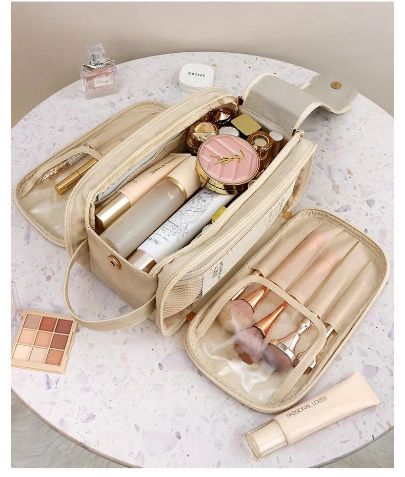 Die Kosmetiktasche ist geräumig genug für alle wichtigen Schönheitsartikel und gleichzeitig kompakt genug für Reisen.